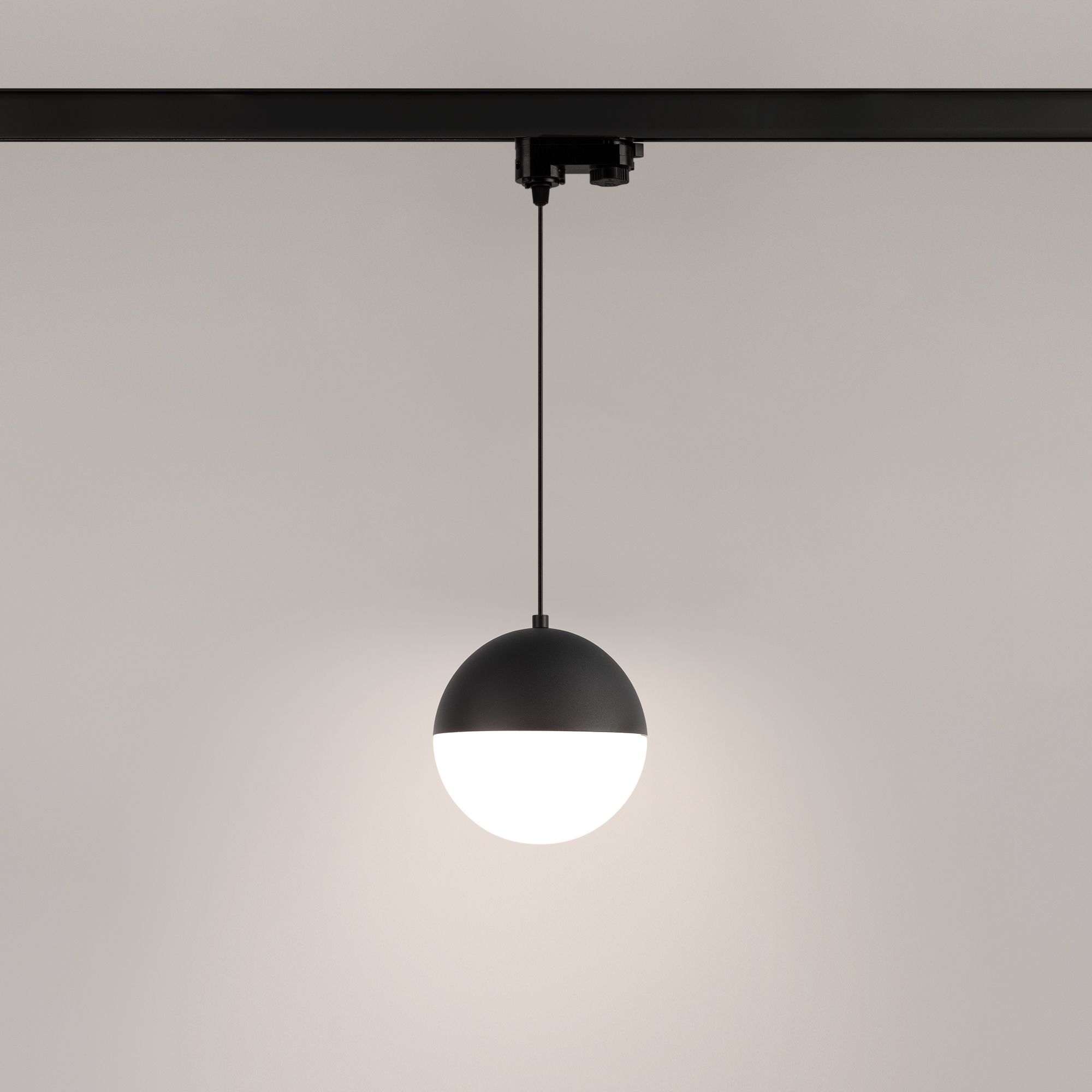 Трековый светильник на подвесе мощностью 11 Вт с дневным белым цветом свечения (4000 К). Для 3-фазных треков. Матовый плафон с широким углом излучения 170° создает приятное рассеянное свечение и особую теплую атмосферу в любых интерьерах. Черный корпус на регулируемом подвесе длиной 1500 мм можно перемещать вдоль трека и менять световые акценты. Диаметр светового модуля 150 мм. Высокий индекс цветопередачи (CRI>90) и световой поток 960 лм для качественного декоративного освещения. Минимальный коэффициент пульсации (менее 1%) гарантирует зрительный комфорт. Встроенный драйвер для подключения к сети 230 В.