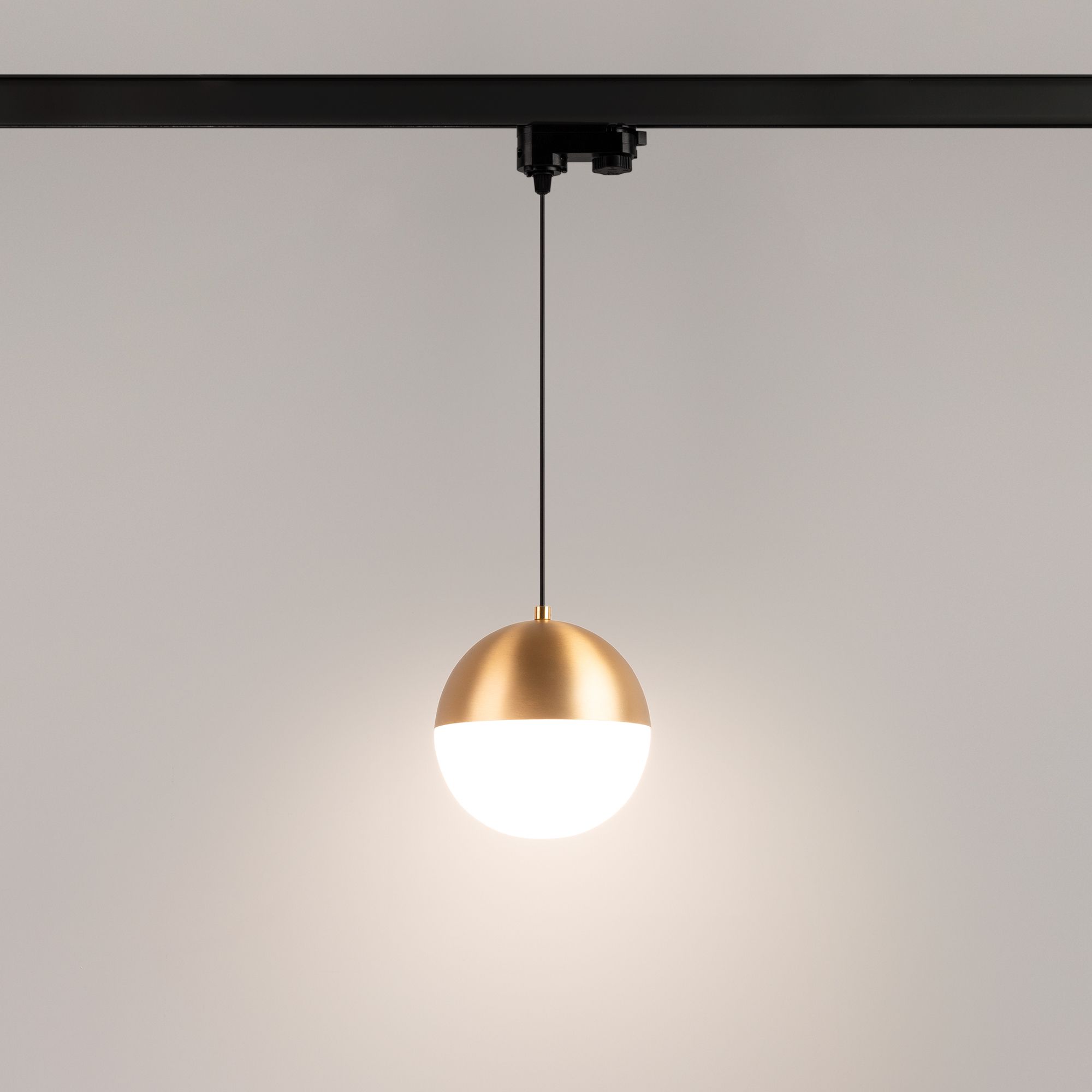 Трековый светильник на подвесе мощностью 11 Вт с дневным белым цветом свечения (4000 К). Для 3-фазных треков. Матовый плафон с широким углом излучения 170° создает приятное рассеянное свечение и особую теплую атмосферу в любых интерьерах. Золотой корпус на регулируемом подвесе длиной 1500 мм можно перемещать вдоль трека и менять световые акценты. Диаметр светового модуля 150 мм. Высокий индекс цветопередачи (CRI>90) и световой поток 960 лм для качественного декоративного освещения. Минимальный коэффициент пульсации (менее 1%) гарантирует зрительный комфорт. Встроенный драйвер для подключения к сети 230 В.