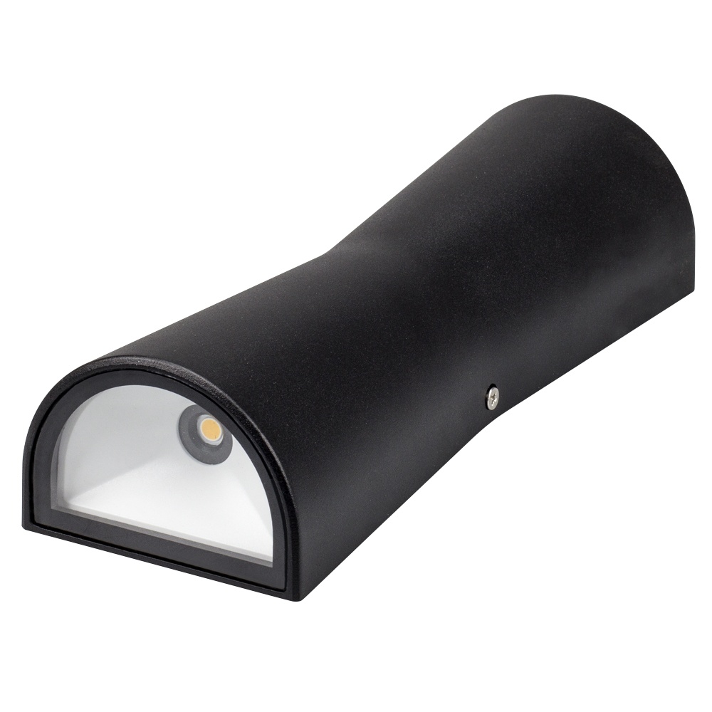 Светодиодный светильник для наружной подсветки стен, свет вверх-вниз. Цвет ДНЕВНОЙ БЕЛЫЙ 4000К, 630Лм, светодиоды 2x5Вт Bridgelux, угол 97°. Влагозащищенный корпус IP54 - черный алюминий, экран закалённое стекло. Питание 220В, мощность 10 Вт. Размеры ДхШхВ -260х90х60 мм.