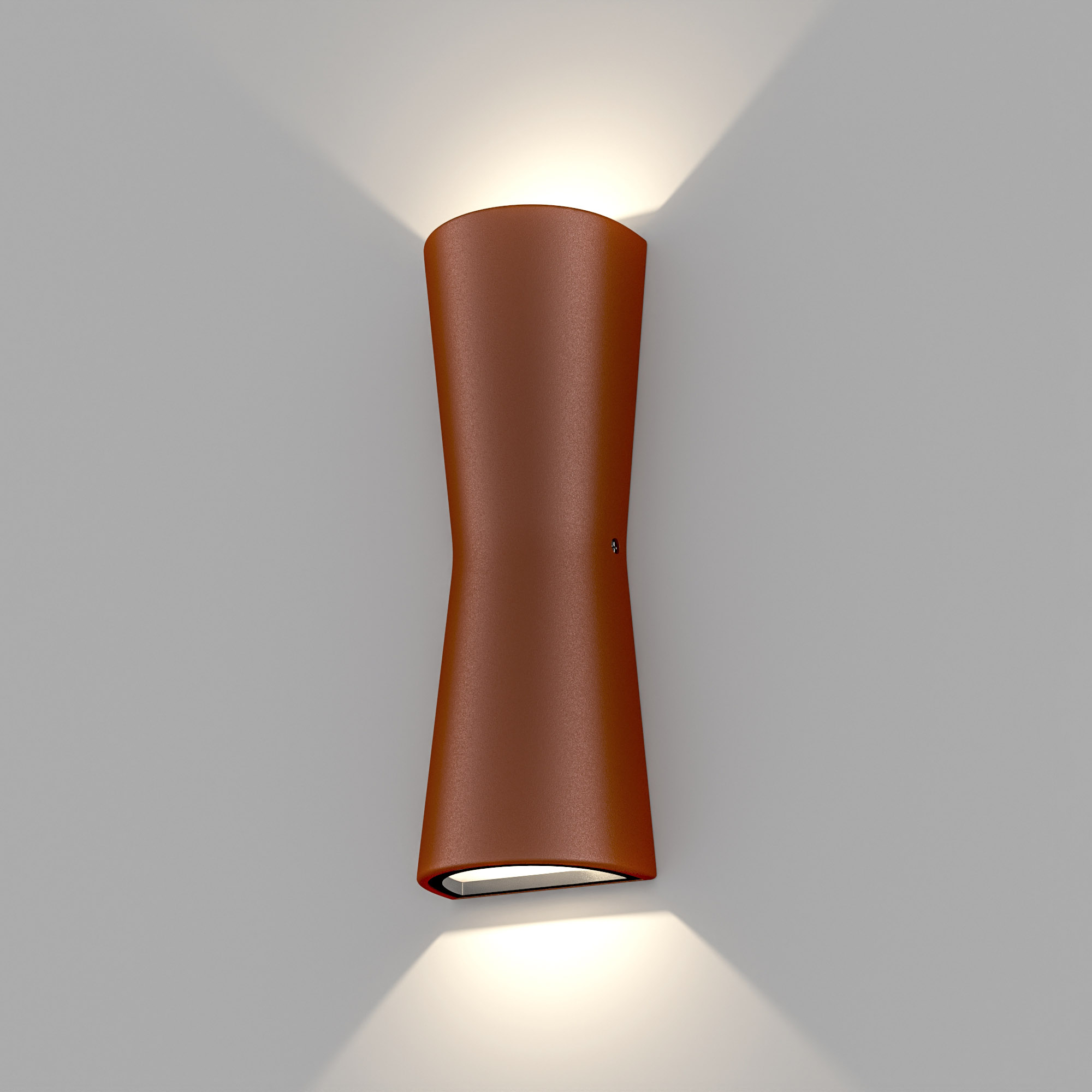 Уличный настенный светильник серии LGD-Wall-Tub с двусторонним свечением вверх-вниз теплого белого цвета (3000 К) предназначен для архитектурной подсветки. Терракотовый цвет Х-образного алюминиевого корпуса будет стильно смотреться на фасадах зданий. Мощность светильника составляет 12 Вт, световой поток — 855 лм. Угол излучения с каждой стороны равен 97°. Экран из закаленного стекла и корпус со степенью пылевлагозащиты IP54 гарантируют прочность светильника и его стабильную эксплуатацию как на открытом воздухе под навесом, так и в помещении.