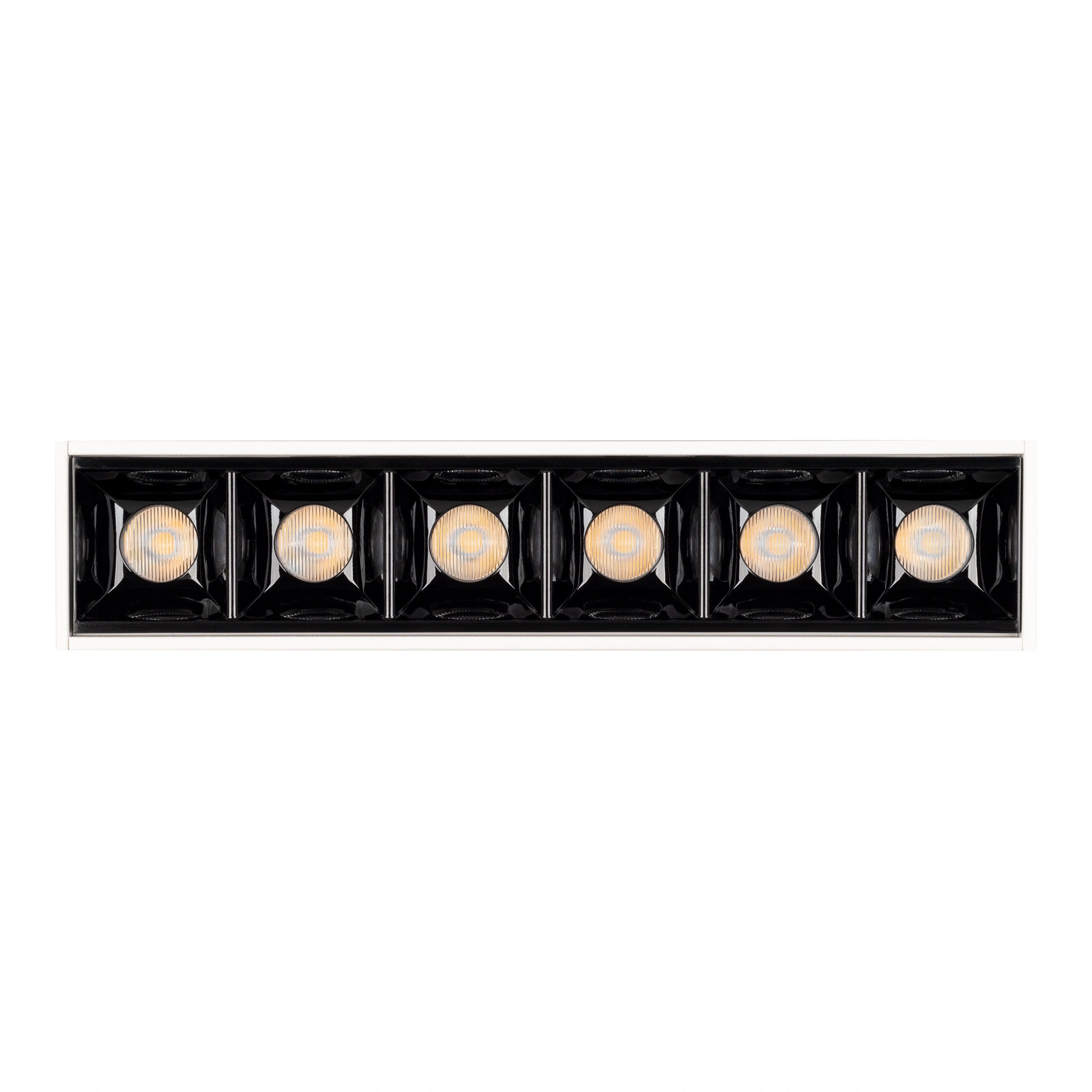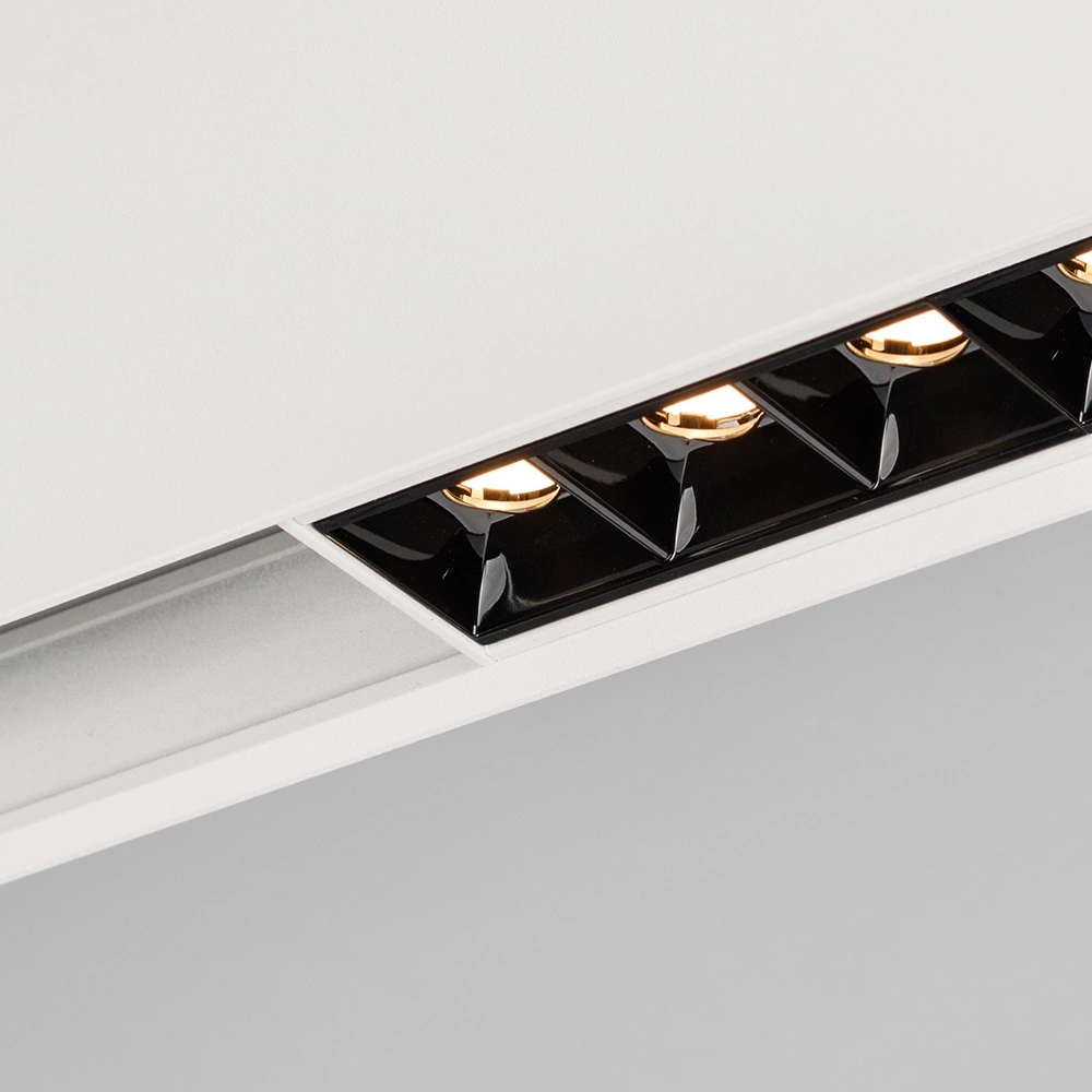 Линейный светодиодный светильник MAG-LASER-45-L160-6W Warm3000 (WH, 15 deg, 24V) мощностью 6 Вт для магнитных треков MAG-45. Светодиоды снабжены линзами, расположены в индивидуальных ячейках и обеспечивают узкий угол излучения 15°, подходящий для организации акцентного освещения. Теплый белый цвет свечения (3000 К), световой поток 400 лм и высокий индекс цветопередачи CRI>90 обеспечивают качественное освещение с точной передачей цветовых оттенков. Есть возможность диммирования. У светильника безопасное напряжение 24 В и быстрая установка в шинопровод с помощью магнитов. Драйвер для подключения поставляется отдельно.