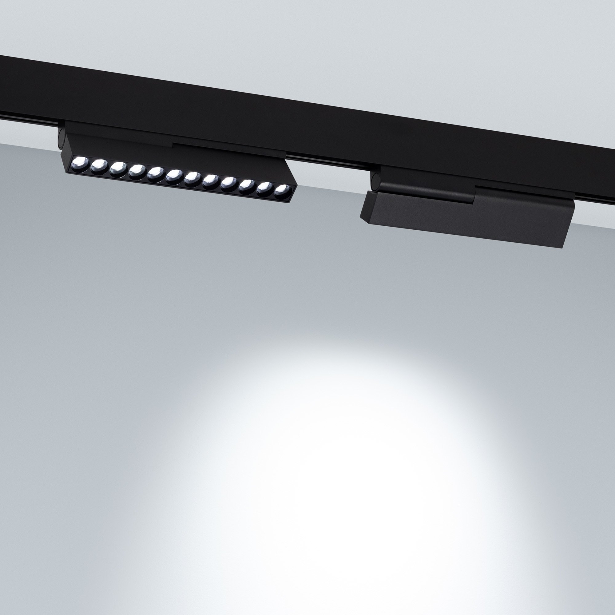 Поворотный светильник ORIENT-DOTS-FOLD мощностью 12 Вт для магнитных треков MAG-ORIENT шириной 26 мм с управлением по DALI. Световой поток 770-950 лм и высокий индекс цветопередачи обеспечивают качественное, равномерное освещение. Изменяемая цветовая температура от 2700 до 6500 К позволяет создавать биодинамическое освещение в помещениях, значительно улучшающее комфорт и настроение в течении дня. Прямоугольный корпус из алюминия черного цвета. Светильник быстро и надежно крепится на трек с помощью магнитов и механических фиксаторов. Корпус светильника отклоняется по вертикали относительно потолка. Узкий угол излучения 30 градусов подойдет для организации направленного освещения. Имеет защиту от пыли IP20 для применения внутри помещений, где нет контакта с жидкостями. Минимальный коэффициент пульсации гарантирует зрительный комфорт без мерцания. Гарантия до 5 лет указывает на надежность и длительную работоспособность. Драйвер для подключения 48В поставляется отдельно.