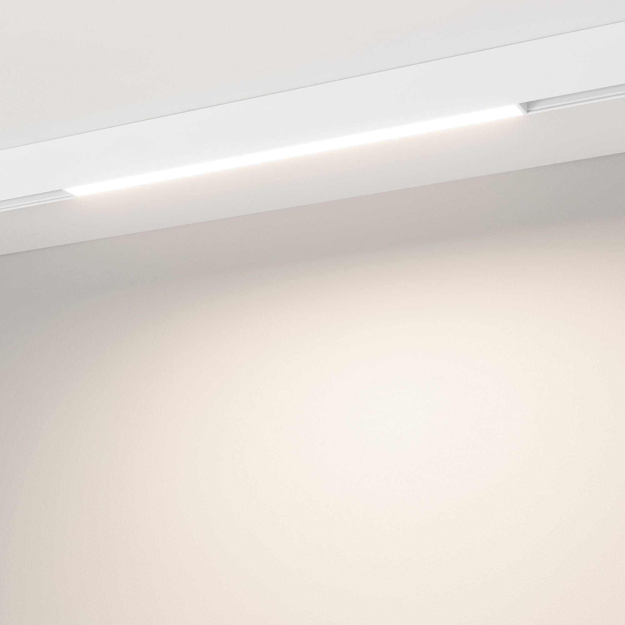 Линейный светильник ORIENT-FLAT мощностью 16 Вт для магнитных треков MAG-ORIENT шириной 26 мм с управлением по DALI. Дневной цвет свечения (4000 К), световой поток 860 лм, световая эффективность 54 лм/Вт и высокий индекс цветопередачи обеспечивают качественное, равномерное освещение. Прямоугольный корпус из алюминия белого цвета. Светильник быстро и надежно крепится на трек с помощью магнитов и механических фиксаторов. Угол излучения 80 градусов подойдет для организации общего освещения, а матовый экран создает рассеянное свечение. Имеет защиту от пыли IP20 для применения внутри помещений, где нет контакта с жидкостями. Минимальный коэффициент пульсации гарантирует зрительный комфорт без мерцания. Гарантия до 5 лет указывает на надежность и длительную работоспособность.
