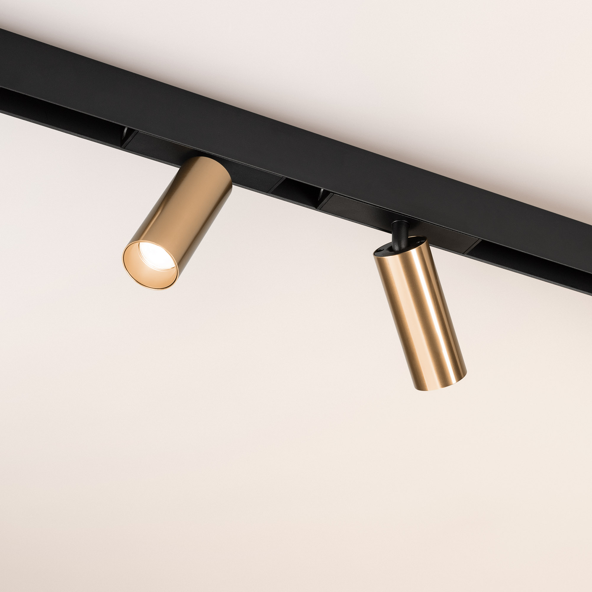 Поворотный светильник MAG-SPOT-25-R90-9W Day4000 (BK-GD, 30 deg, 24V) мощностью 9 Вт для магнитных треков MAG-25. Дневной белый цвет свечения (4000 К) и высокий индекс цветопередачи CRI>90 обеспечивают качественное освещение с точной передачей цветовых оттенков. Световой поток 630 лм и узкий угол излучения 30° идеально подходят для организации акцентной подсветки в разных типах помещений. Световой модуль светильника золотистого цвета отклоняется относительно горизонтали на 90° и поворачивается на 350°, позволяя за секунды менять световые акценты. Есть возможность диммирования. У светильника безопасное напряжение 24 В и быстрая установка в шинопровод с помощью магнитов. Драйвер для подключения поставляется отдельно. Идеально подходит для освещения жилых, офисных, торговых и других помещений.