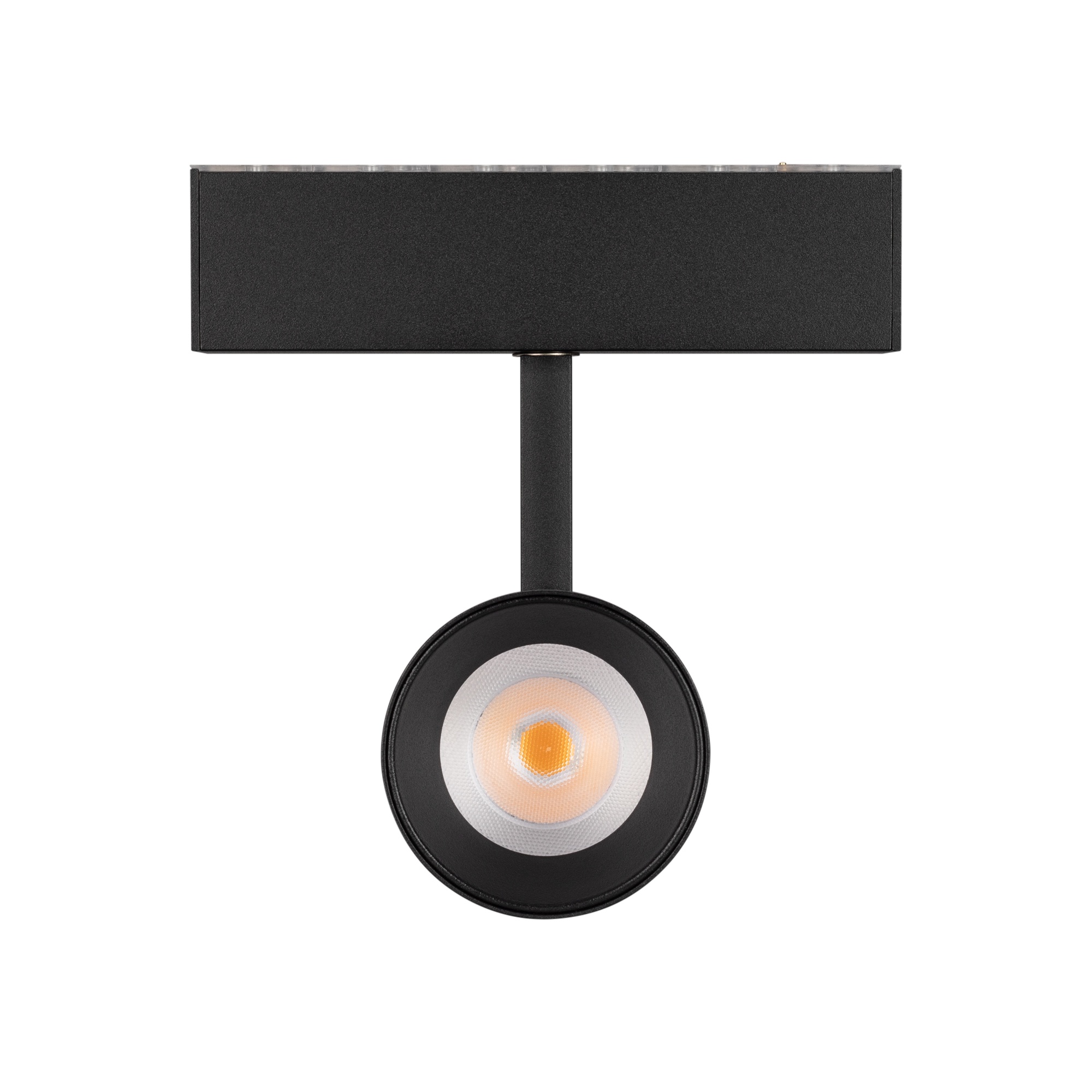 Поворотный светодиодный светильник MAG-SPOT-45-R65-18W Warm3000 (BK, 36 deg, 24V, DALI) мощностью 18 Вт для магнитных треков MAG-45 c управлением DALI. Узкий угол излучения 36° для создания акцентного освещения. Теплый белый цвет свечения (3000 К), световой поток 1100 лм и высокий индекс цветопередачи CRI>90 обеспечивают качественное освещение с точной передачей цветовых оттенков. Световой модуль светильника поворачивается на 350° и отклоняется относительно горизонтали на 90°, что позволяет за секунды менять световые акценты. Есть возможность управлять яркостью по протоколу DALI. У светильника безопасное напряжение 24 В и быстрая установка в шинопровод с помощью магнитов. Драйвер для подключения поставляется отдельно.