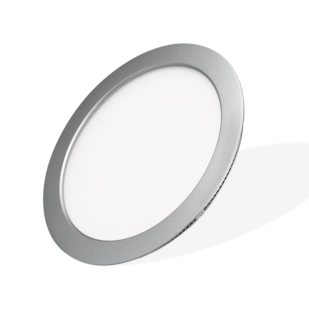 Тонкая круглая панель с эксклюзивным дизайном рамки. Цвет корпуса - серебро. Мощность 18Вт. Цвет свечения ТЕПЛЫЙ БЕЛЫЙ 3000K. Световой поток 1260-1500 лм. Угол 120°. Размер Ф240 x 15мм, установка в отверстие 230мм. Питание от сети 220VAC, драйвер в комплекте (DC870mA, 18-22V).