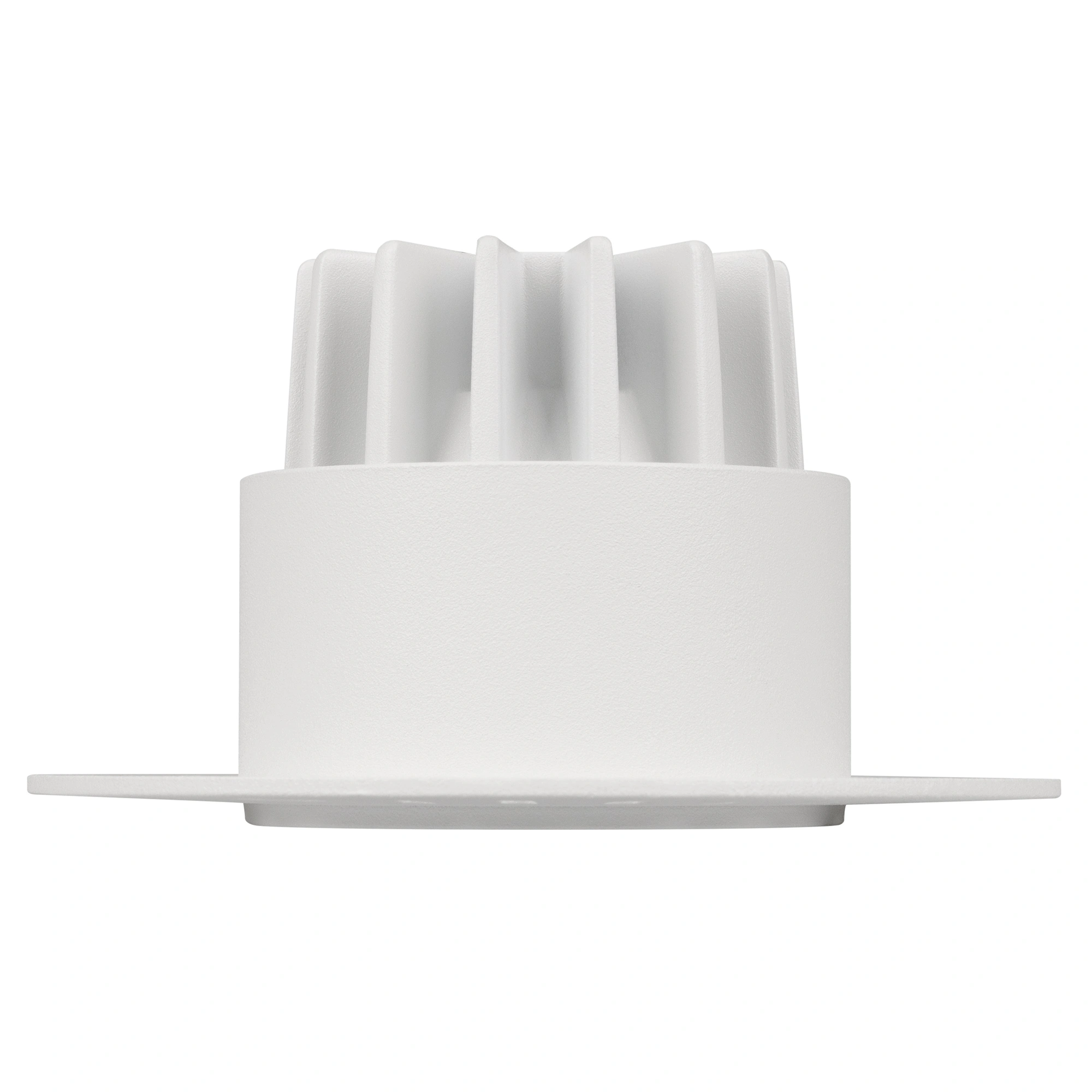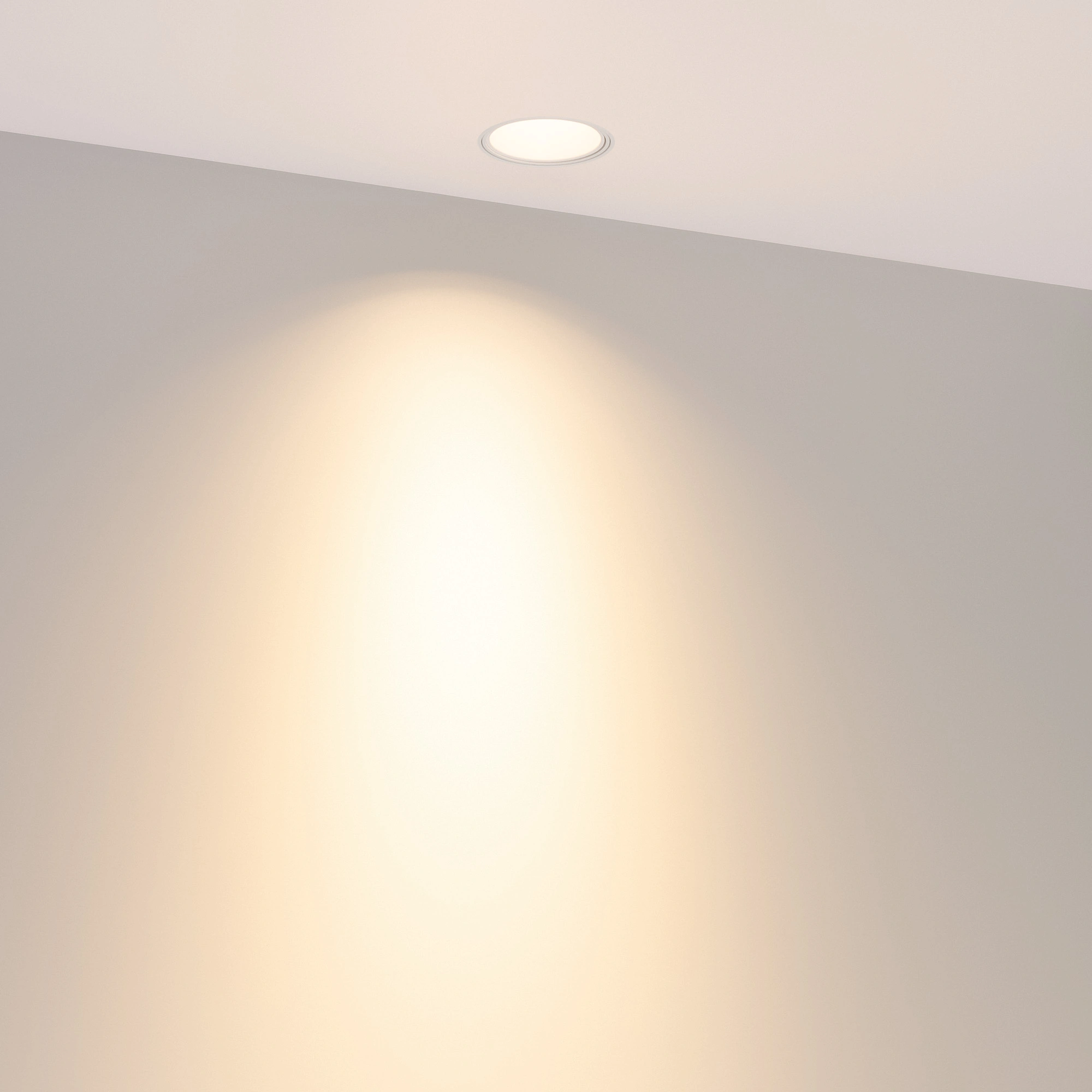 Встраиваемый безрамочный светильник под шпаклевку мощностью 6.3 Вт. Предназначен для освещения жилых, офисных, торговых и других помещений. Теплый белый цвет свечения (3000 К) и световой поток 455 лм. Заглубленная оптика ограничивает боковое излучение, тем самым исключая появление ослепляющего эффекта. Высокий индекс цветопередачи (CRI>90) и узкий угол излучения 40° для локального освещения. Светильник встраивается в установочное отверстие диаметром 65 мм. Драйвер в комплекте для подключения к сети 230 В.