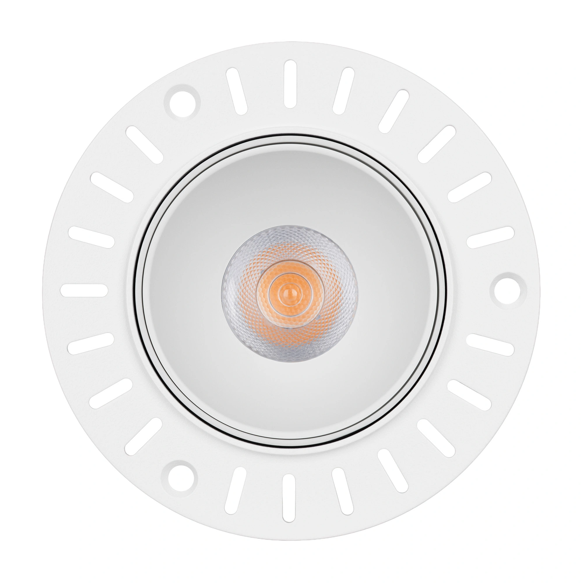 Встраиваемый безрамочный светильник под шпаклевку мощностью 12 Вт. Предназначен для освещения жилых, офисных, торговых и других помещений. Дневной белый цвет свечения (4000 К) и световой поток 910 лм. Заглубленная оптика ограничивает боковое излучение, тем самым исключая появление ослепляющего эффекта. Высокий индекс цветопередачи (CRI>90) и узкий угол излучения 32° для локального освещения. Светильник встраивается в установочное отверстие диаметром 85 мм. Драйвер в комплекте для подключения к сети 230 В.