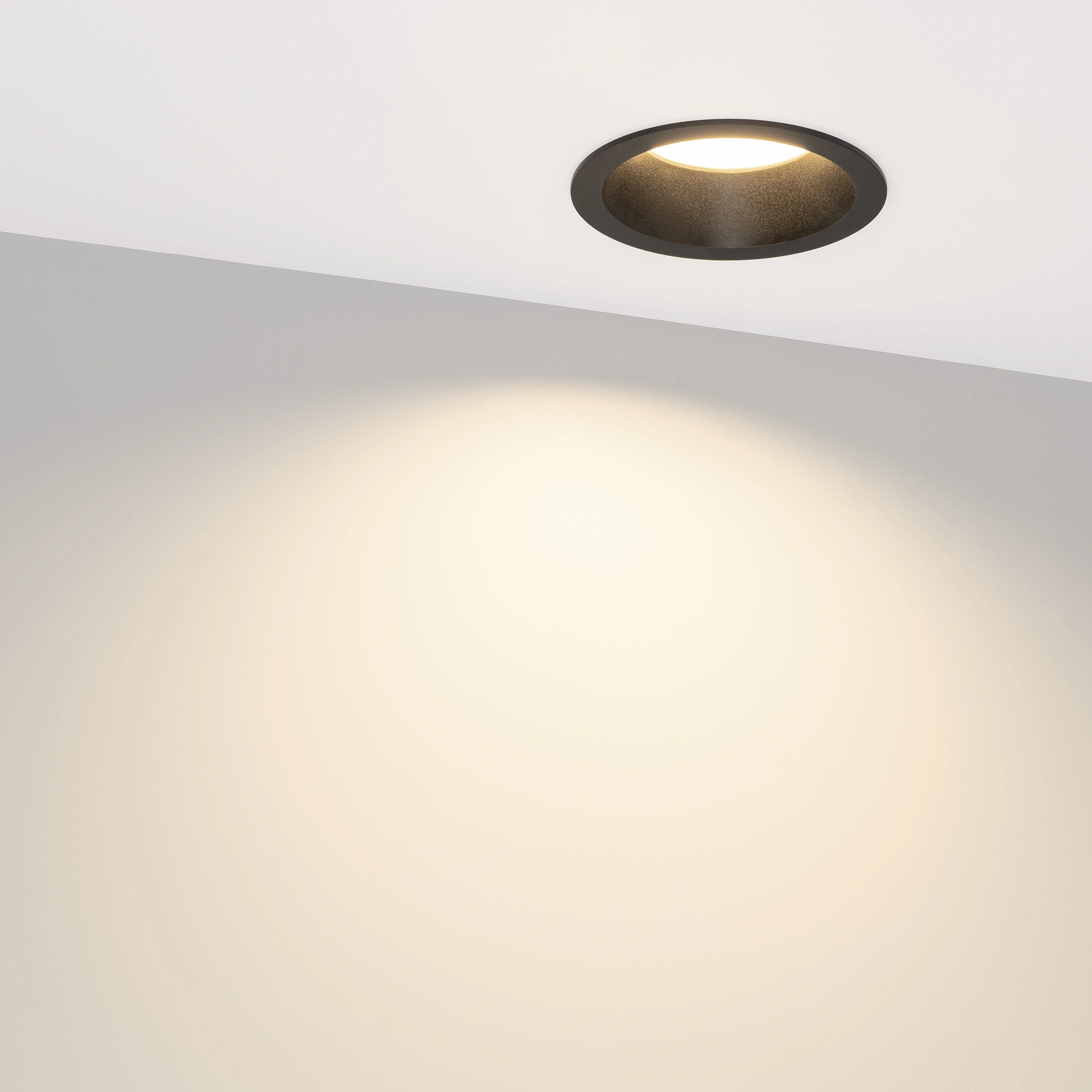 Встраиваемый круглый светильник с высоким индексом цветопередачи CRI>90 обеспечивает качественное освещение с точной передачей цветовых оттенков. Алюминиевый корпус черного цвета с утопленным светодиодным модулем является интересным дизайнерским решением, создавая эффект света из ниоткуда, а также делает освещение очень комфортным для глаз. Особая конфигурация корпуса позволяет эффективно отводить тепло и продлевает срок службы светодиодов. Светильник с широким углом рассеивания 85 градусов и высокой светоотдачей создает равномерное свечение без мерцаний. Легко устанавливается с помощью пружин в монтажное отверстие. Драйвер IP54, поставляется в комплекте и позволяет быстро подключить светильник напрямую к сети переменного тока 230 В. Диммирование возможно при замене штатного драйвера. Предназначен для основного освещения в жилых, коммерческих, торговых помещениях. Защита корпуса на уровне IP54 позволяет устанавливать светильник в местах с повышенной влажностью.