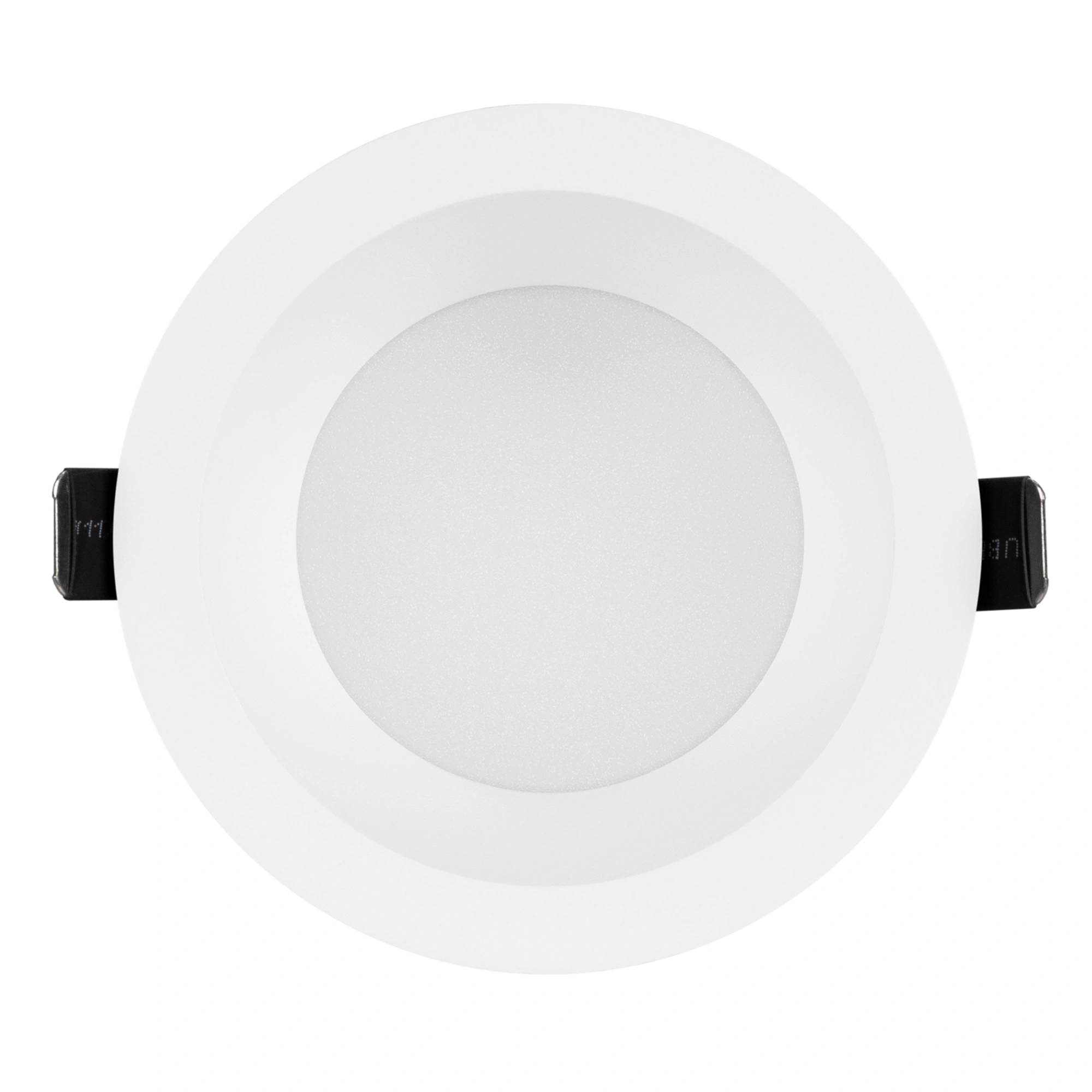 Встраиваемый круглый светильник с индексом CRI>90 обеспечивает точную передачу цветовых оттенков. Алюминиевый корпус белого цвета с утопленным светодиодным модулем является интересным дизайнерским решением, создавая эффект света из ниоткуда. Особая конфигурация корпуса позволяет эффективно отводить тепло и продлевает срок службы светодиодов, а также делает освещение равномерным, комфортным для глаз, без мерцания и видимости точек светодиодов. Светильник с широким углом излучения 85 градусов и эффективностью 90 лм/Вт обеспечивает качественное освещение с высокой светоотдачей. Легко устанавливается с помощью пружин в монтажное отверстие. Драйвер IP54, в комплекте позволяет быстро подключать светильник напрямую к сети переменного тока 230 В. Диммирование возможно при замене штатного драйвера. Защита корпуса на уровне IP54 позволяет устанавливать светильник в местах с повышенной влажностью. Предназначен для основного освещения в жилых, коммерческих, торговых помещениях.