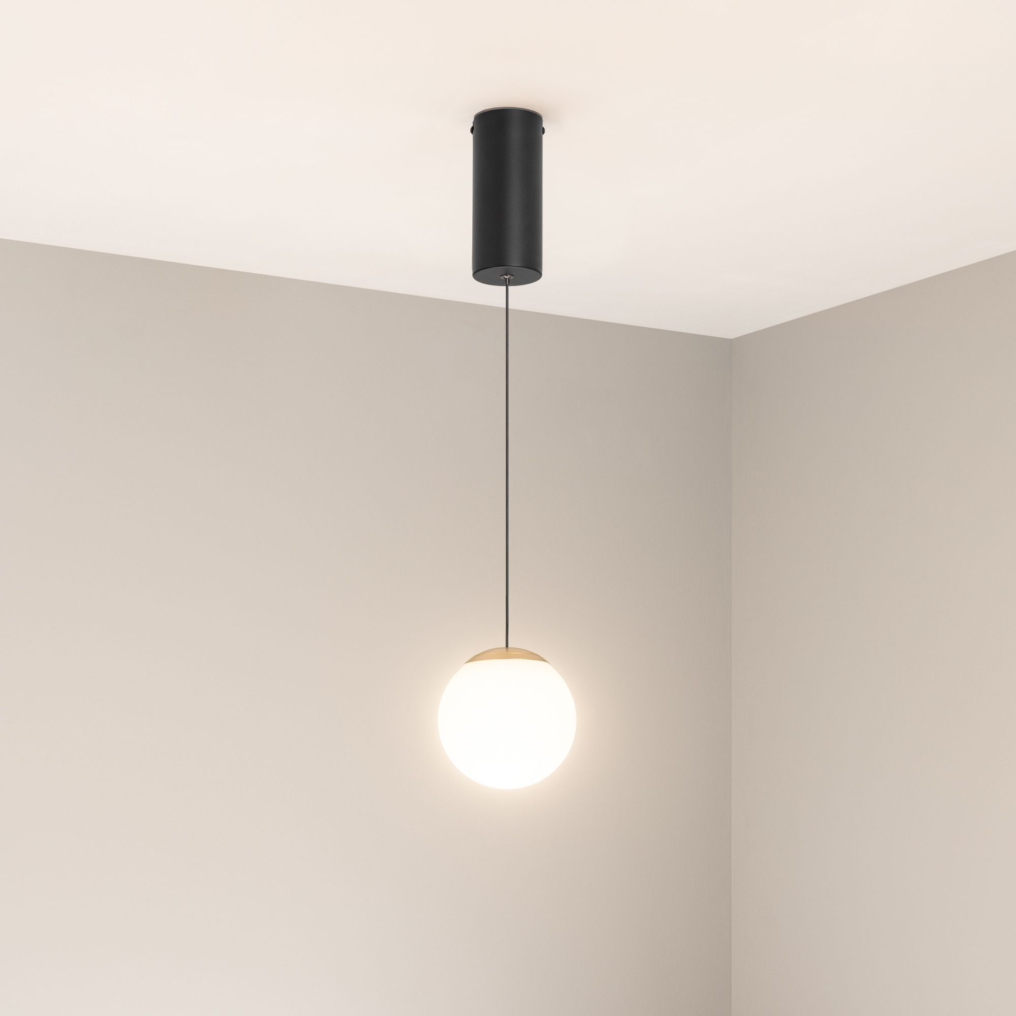 Декоративный подвесной светильник мощностью 10 Вт с дневным белым цветом свечения (4000 К). Дизайн светильника напоминает изящное украшение с жемчугом. Черный корпус с золотой вставкой на регулируемом подвесе длиной 1350 мм. Диаметр светового модуля 130 мм. Высокий индекс цветопередачи (CRI>90) и световой поток 720 лм для качественного декоративного освещения. Минимальный коэффициент пульсации (менее 1%) гарантирует зрительный комфорт. Драйвер в комплекте для подключения к сети 230 В.