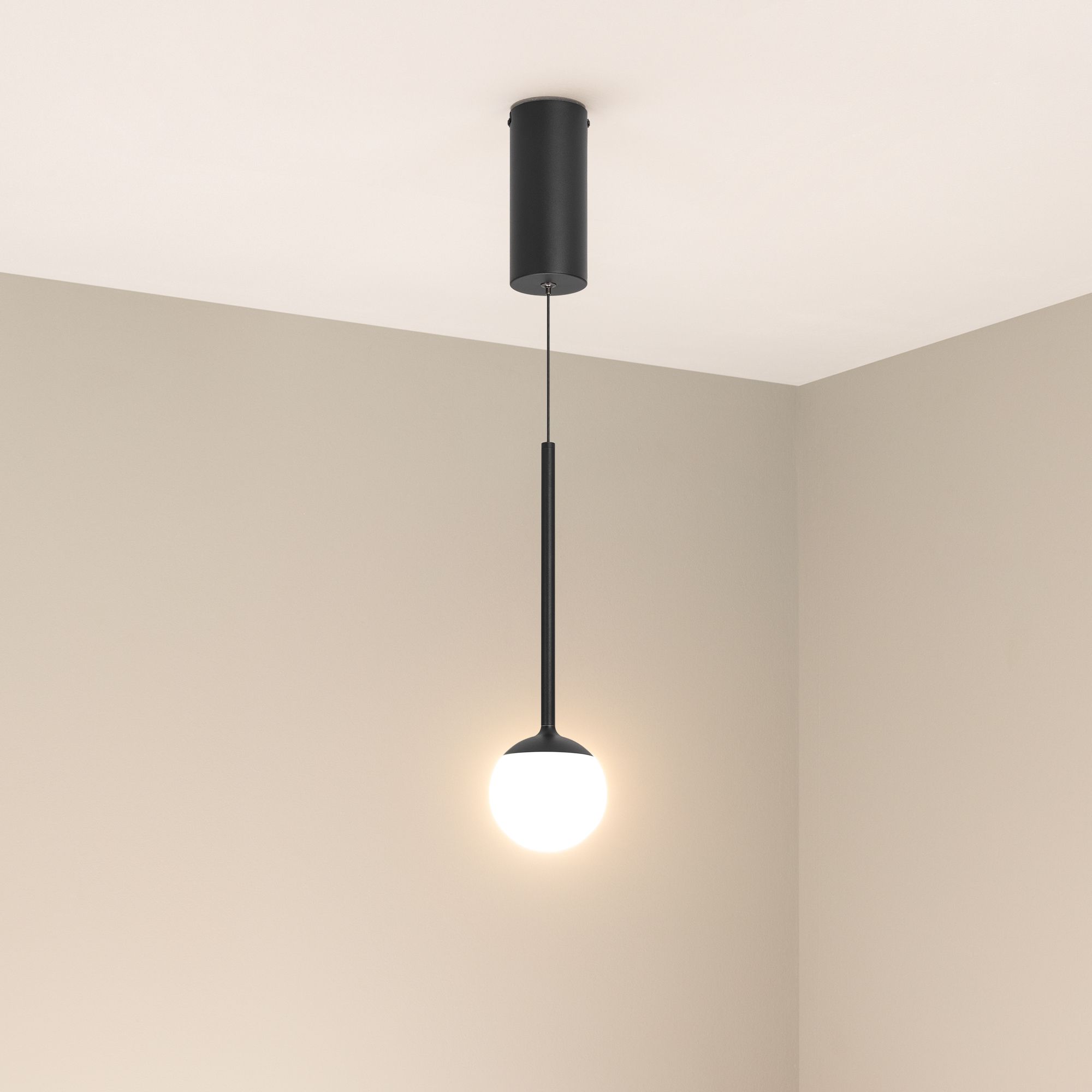 Декоративный подвесной светильник мощностью 8 Вт с теплым белым цветом свечения (3000 К). Дизайн светильника напоминает изящное украшение с жемчугом. Черный корпус с черной вставкой на регулируемом подвесе длиной 1150 мм. Диаметр светового модуля 100 мм. Высокий индекс цветопередачи (CRI>90) и световой поток 620 лм для качественного декоративного освещения. Минимальный коэффициент пульсации (менее 1%) гарантирует зрительный комфорт. Драйвер в комплекте для подключения к сети 230 В.