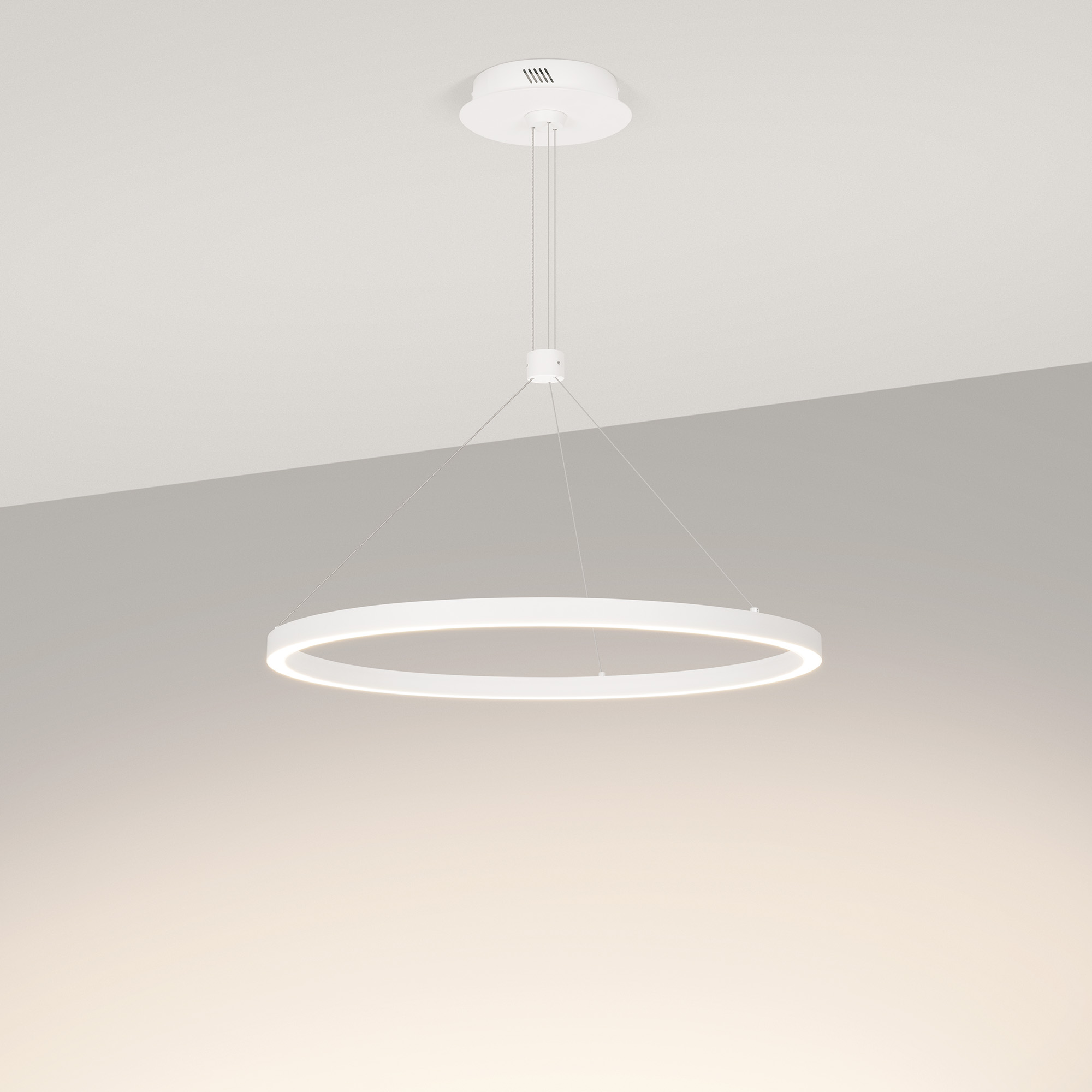 Подвесной светодиодный светильник CONGO мощностью 36 Вт предназначен для основного или декоративного освещения в жилых, коммерческих, офисных помещениях. Светильник в современном стиле хай-тек с широким углом излучения 120 градусов будет оригинально смотреться в разных интерьерах. Максимальная длина регулируемого подвеса 1200 мм. Подключение осуществляется с помощью встроенного драйвера напрямую к сети переменного тока 230 В. Индекс CRI>90 отвечает за отличное восприятие и передачу цветовых оттенков. Низкая пульсация обеспечивает комфортное освещение без мерцания. Алюминиевый корпус светильника выполнен в форме круга, а матовый экран из силикона создает равномерное свечение без видимости точек от светодиодов. Пылевлагозащита на уровне IP20 позволяет применять модель внутри помещений, где нет контакта с водой или другими жидкостями. Комбинации из нескольких светильников разного диаметра эффектно будут смотреться в зонах лобби гостиниц, вестибюлях театров или торговых центрах.