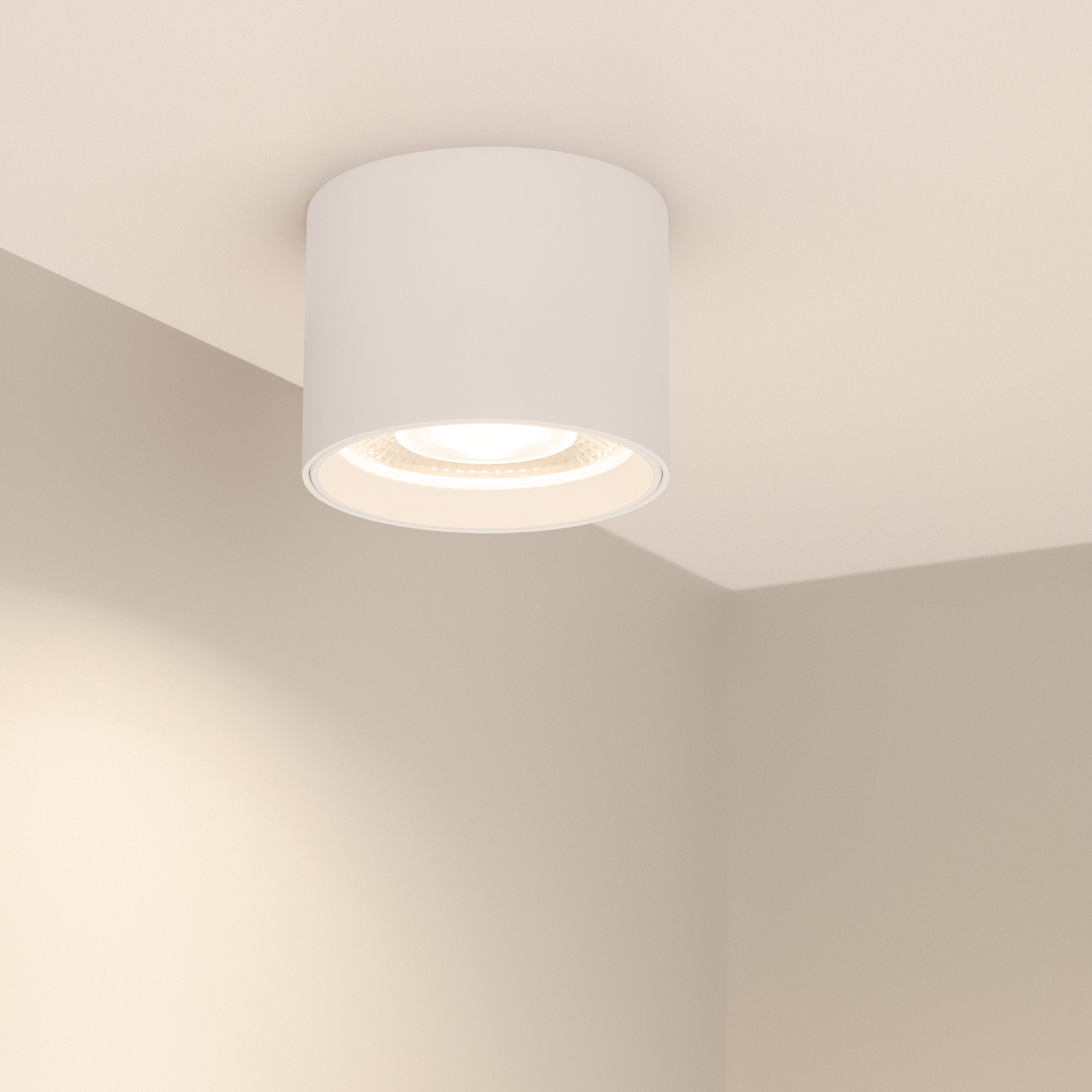 Накладной интерьерный светильник DICE мощностью 10 Вт с равномерным цветом свечения, световым потоком 780 лм и высоким индексом цветопередачи CRI>90 для создания качественного акцентного освещения в жилых, коммерческих и других помещениях. Отличное решение для санузлов, холлов, коридоров, входных групп. Благодаря встроенному рефлектору, линзе и полупрозрачному экрану из PMMA формируется яркий, узконаправленный поток света с углом 24 градуса. Компактный по размеру, круглый корпус отлично впишется в любой интерьер. Корпус выполнен с защитой от пыли и влаги степенью IP54. Светильник предназначен для установки внутри помещений, где возможны брызги воды, но будет отсутствовать постоянный, непрерывный контакт с водой. Поставляется в комплекте со встроенным драйвером, что дает возможность быстро и безопасно подключать его напрямую к сети с напряжением питания 230 В. Низкая пульсация обеспечивает комфортное освещение без мерцания.