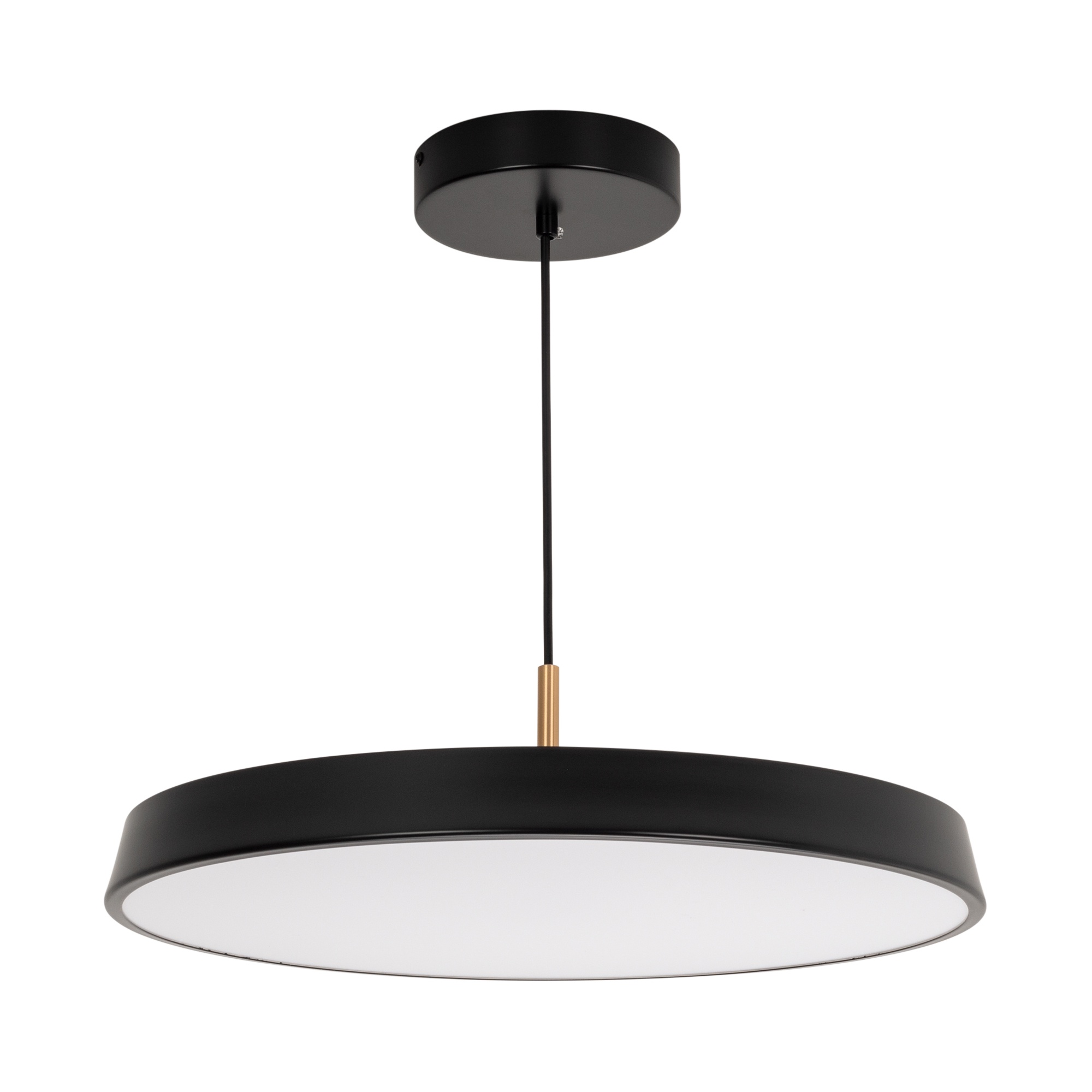 Подвесной светильник SP-ELEGANT-R500-37W Day4000 (BK, 120 deg, 230V) мощностью 37 Вт с дневным белым цветом свечения (4000 К) и индексом цветопередачи CRI>80 для освещения торговых, офисных, жилых и других помещений. Круглый корпус из стали на изящном подвесе длиной 1200 мм с золотистой декоративной вставкой будет уместно смотреться в любом интерьере. Световой поток 3071 лм и широкий угол излучения 120° для создания основного освещения. Коэффициент пульсации менее 1% гарантирует комфортное и приятное для глаз освещение без мерцания. Подвесной монтаж и удобная регулировка длины подвеса без специального инструмента. Компактный встроенный драйвер позволяет быстро и безопасно подключить светильник к сети переменного тока 230 В.