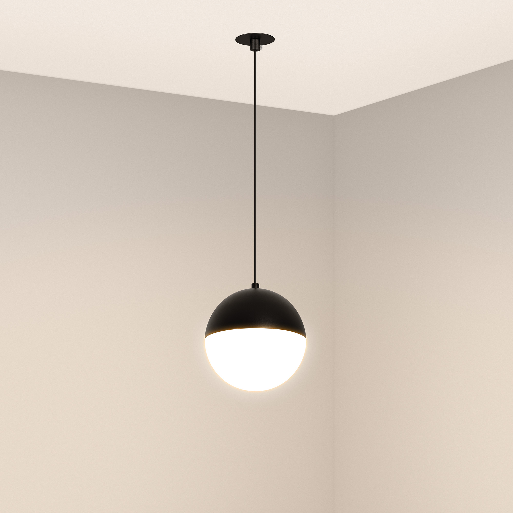 Элегантный встраиваемый подвесной светильник мощностью 11 Вт с дневным белым цветом свечения (4000 К). Потолочная чаша встраиваемая, черного цвета. Матовый плафон диаметром 150 мм с широким углом излучения 170° создает приятное рассеянное свечение и особую теплую атмосферу в любых интерьерах. Черный корпус на регулируемом подвесе длиной 1500 мм. Высокий индекс цветопередачи (CRI>90) и световой поток 960 лм для качественного декоративного освещения. Минимальный коэффициент пульсации (менее 1%) гарантирует зрительный комфорт. Встроенный драйвер для подключения к сети 230 В.