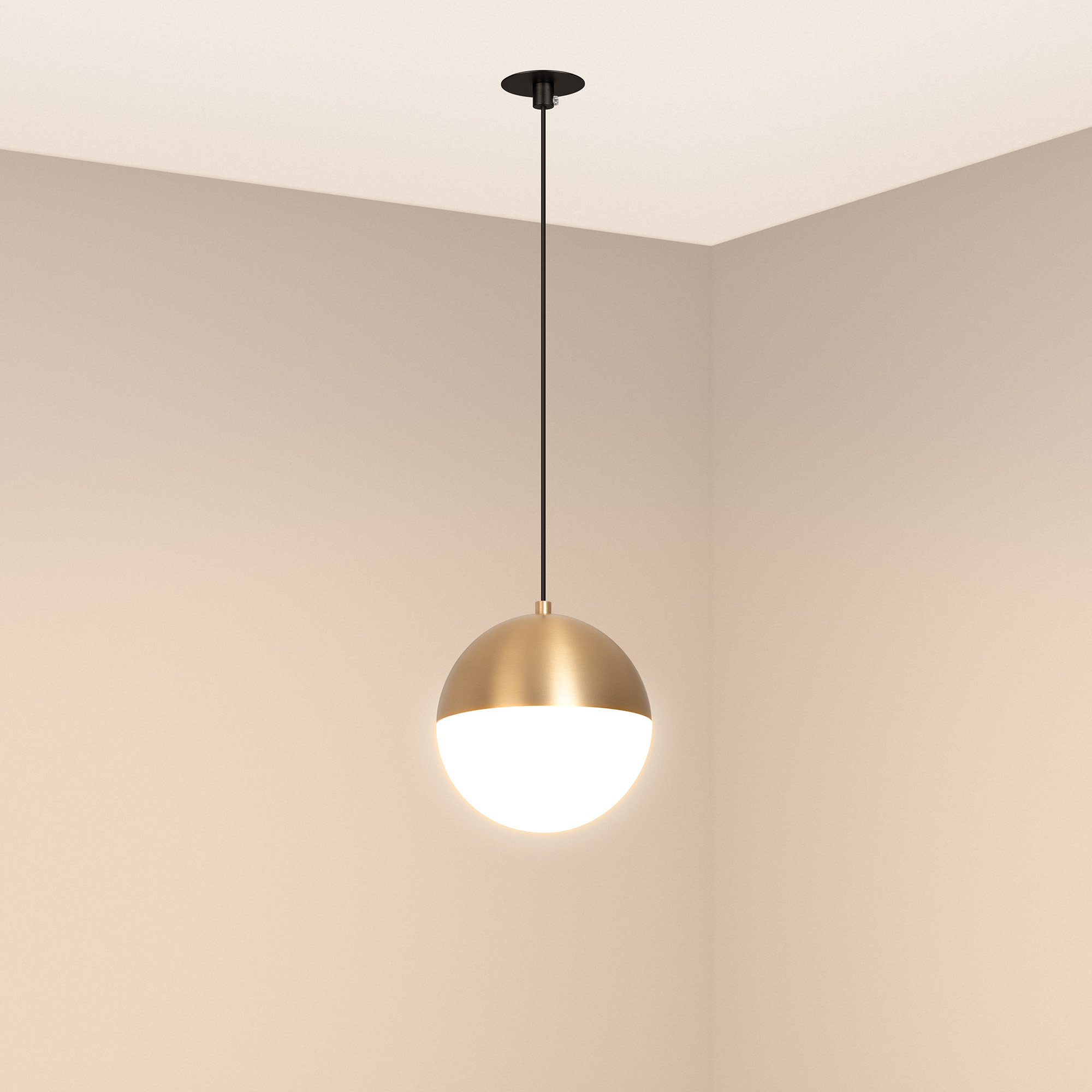 Элегантный встраиваемый подвесной светильник мощностью 11 Вт с дневным белым цветом свечения (3000 К). Потолочная чаша встраиваемая, черного цвета. Матовый плафон диаметром 150 мм с широким углом излучения 170° создает приятное рассеянное свечение и особую теплую атмосферу в любых интерьерах. Золотой корпус на регулируемом подвесе длиной 1500 мм. Высокий индекс цветопередачи (CRI>90) и световой поток 960 лм для качественного декоративного освещения. Минимальный коэффициент пульсации (менее 1%) гарантирует зрительный комфорт.