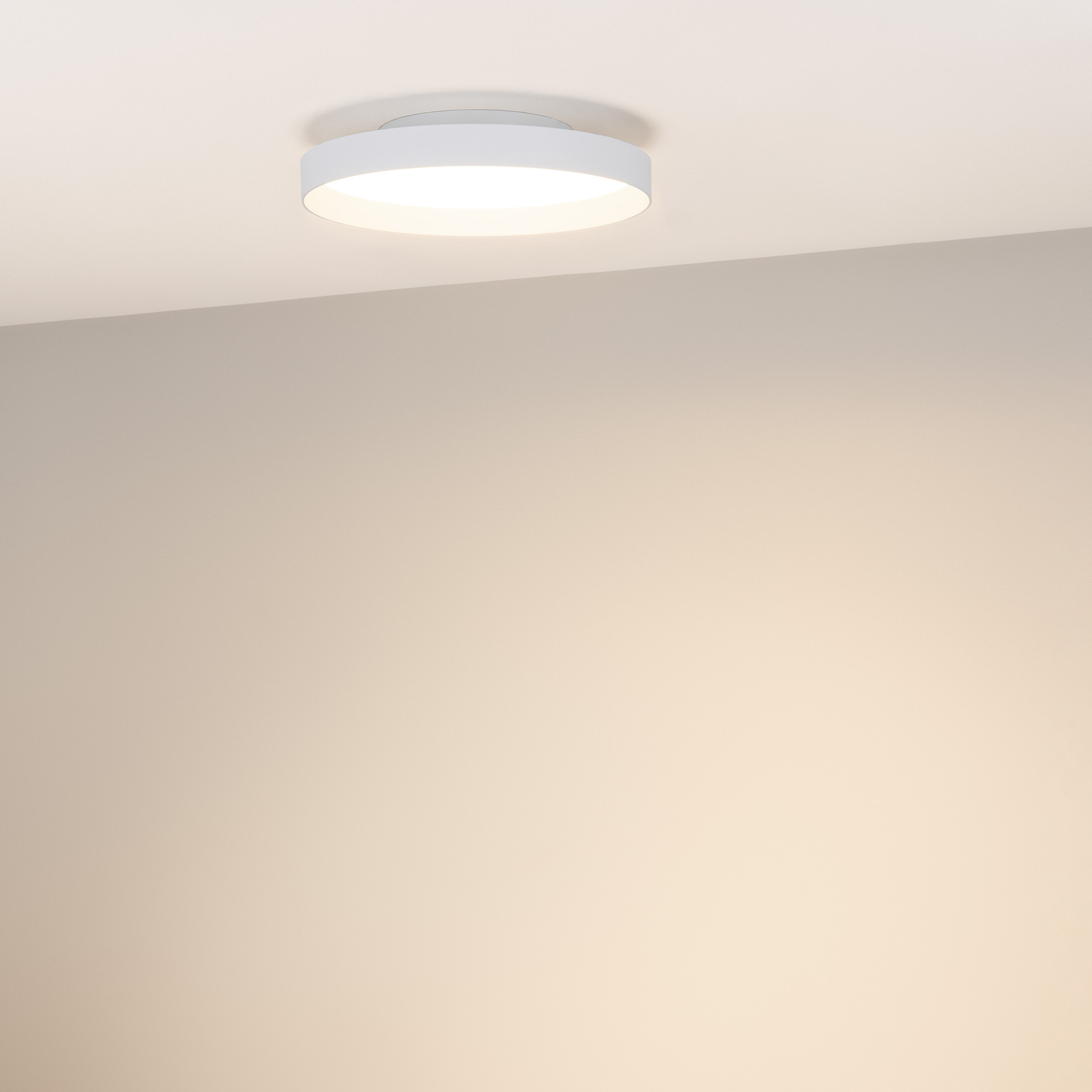 Накладной светодиодный светильник ESTELY мощностью 30 Вт с возможностью выбора цветовой температуры от теплого до дневного белого цвета свечения предназначен для создания качественного основного освещения в жилых или коммерческих помещениях. Светильник с индексом цветопередачи CRI>92 и широким углом излучения 80 градусов создает равномерное свечение с отличным цветовым восприятием, не переутомляя глаза. Утопленный матовый призматический рассеиватель из поликарбоната обеспечивает равномерную засветку без видимости точек от светодиодов. Встроенный драйвер обеспечивает безопасное и быстрое подключение напрямую к сети 230 В, а управление по TRIAC позволяет отрегулировать яркость.