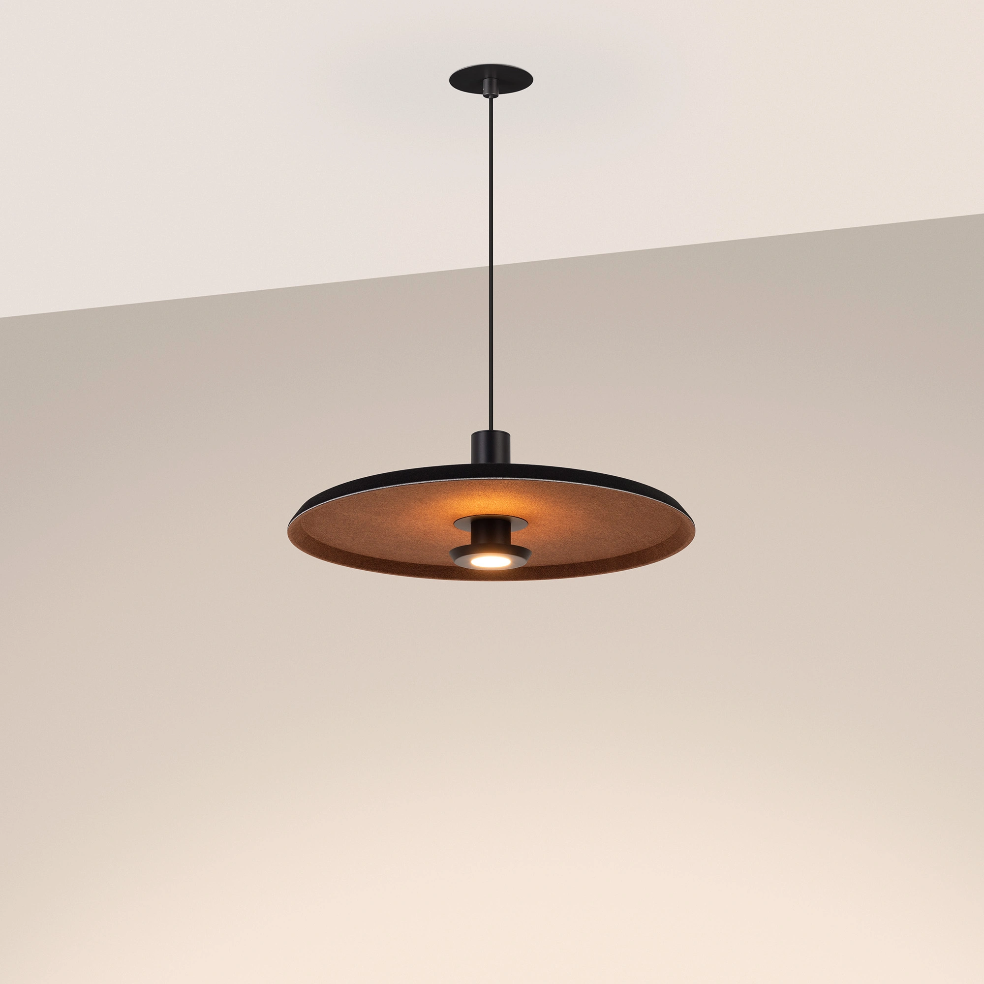 Подвесной светодиодный светильник KOTARO мощностью 12 Вт, теплого цвета свечения 3000 K предназначен для направленного декоративного освещения в жилых или коммерческих помещениях. Светильник с узким углом излучения 36 градусов оригинально дополнит интерьеры кухни-гостиной или зала кафе, ресторанов. Максимальная длина регулируемого подвеса 2000 мм. Подключение осуществляется с помощью входящего в комплект драйвера напрямую к сети переменного тока 230 В. Индекс CRI>94 отвечает за отличное восприятие и передачу цветовых оттенков. Низкая пульсация обеспечивает комфортное освещение без мерцания. Фигурный плафон выполнен из переработанного фетра. Пылевлагозащита на уровне IP20 позволяет применять модель внутри помещений, где нет контакта с водой или другими жидкостями. Управление яркостью по протоколу TRIAC и два вида чаши в комплекте - встраиваемая и накладная, позволяют смонтировать и настроить светильник под конкретные задачи.
