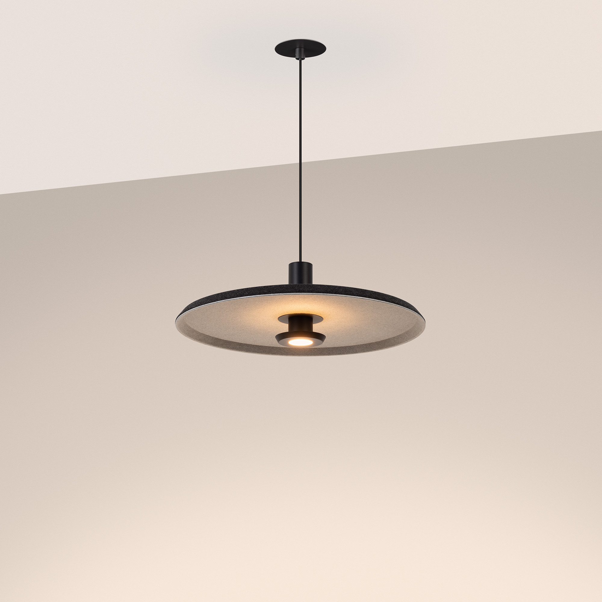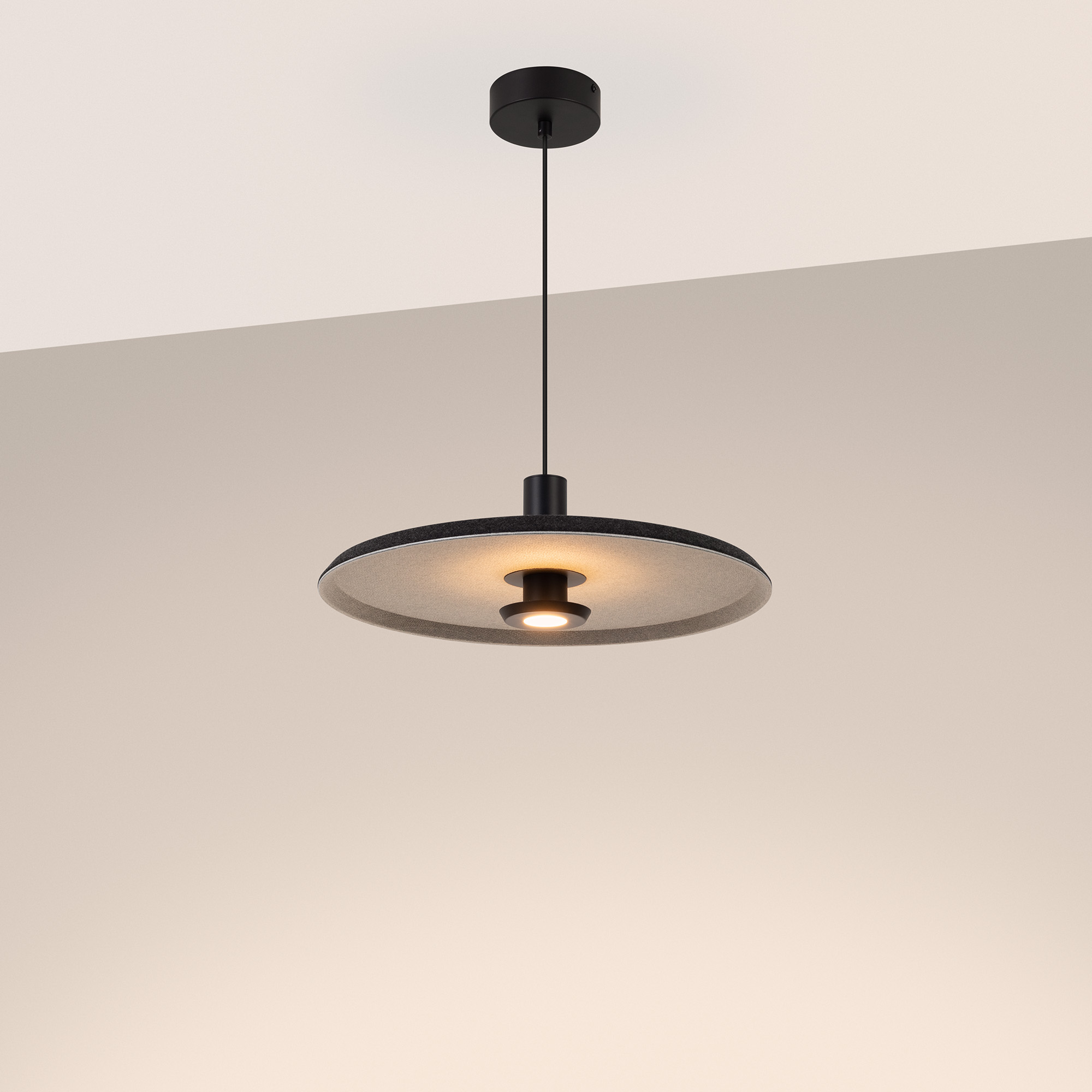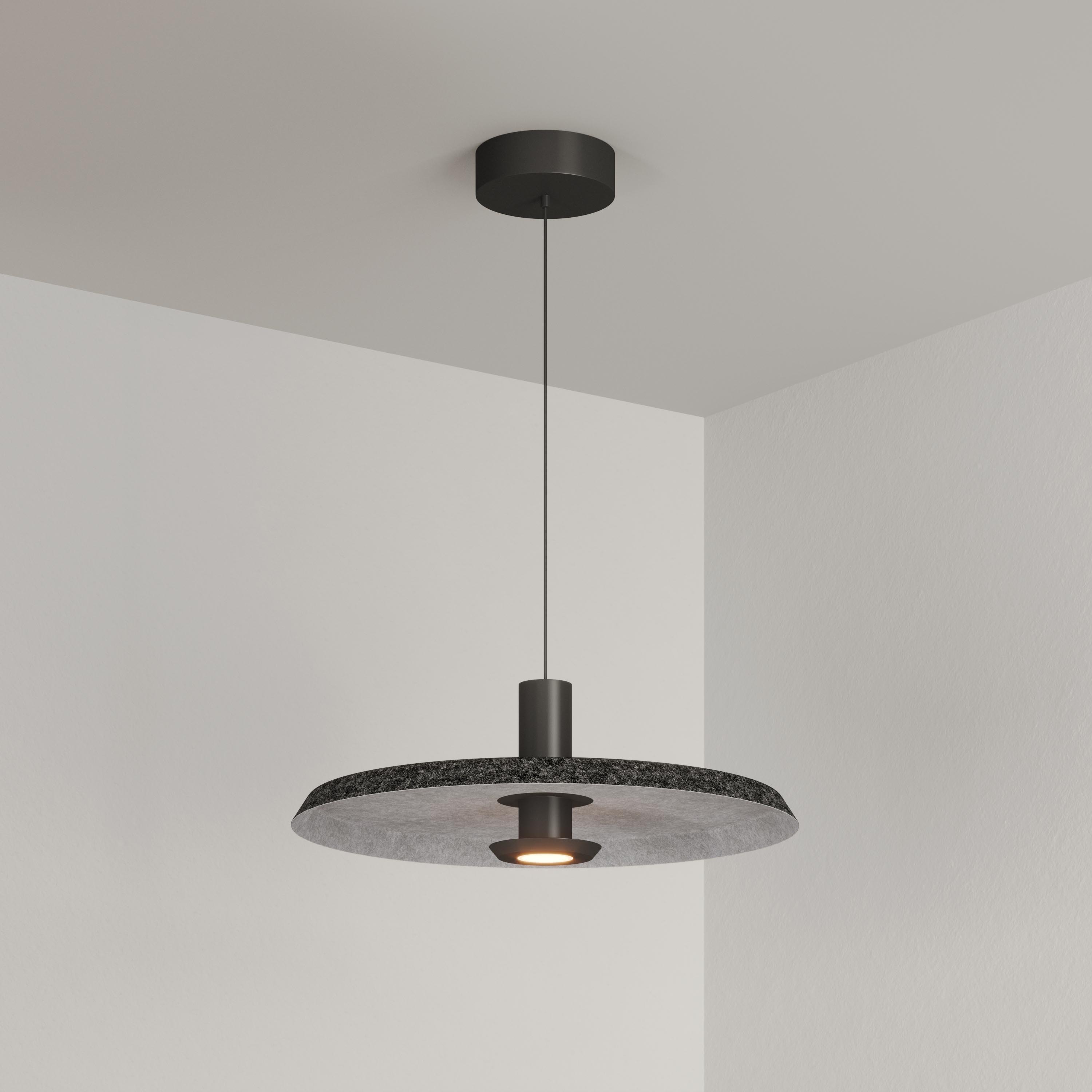 Подвесной светодиодный светильник KOTARO мощностью 12 Вт, теплого цвета свечения 3000 K предназначен для направленного декоративного освещения в жилых или коммерческих помещениях. Светильник с узким углом излучения 36 градусов оригинально дополнит интерьеры кухни-гостиной или зала кафе, ресторанов. Максимальная длина регулируемого подвеса 2000 мм. Подключение осуществляется с помощью входящего в комплект драйвера напрямую к сети переменного тока 230 В. Индекс CRI>94 отвечает за отличное восприятие и передачу цветовых оттенков. Низкая пульсация обеспечивает комфортное освещение без мерцания. Фигурный плафон выполнен из переработанного фетра. Пылевлагозащита на уровне IP20 позволяет применять модель внутри помещений, где нет контакта с водой или другими жидкостями. Управление яркостью по протоколу TRIAC и два вида чаши в комплекте - встраиваемая и накладная, позволяют смонтировать и настроить светильник под конкретные задачи.