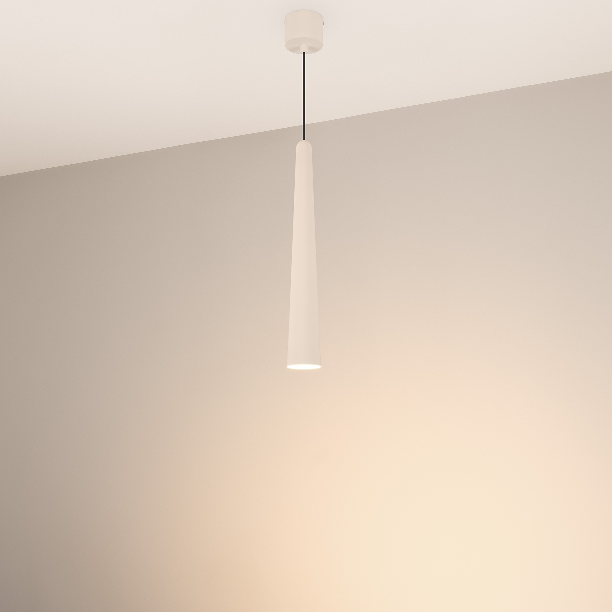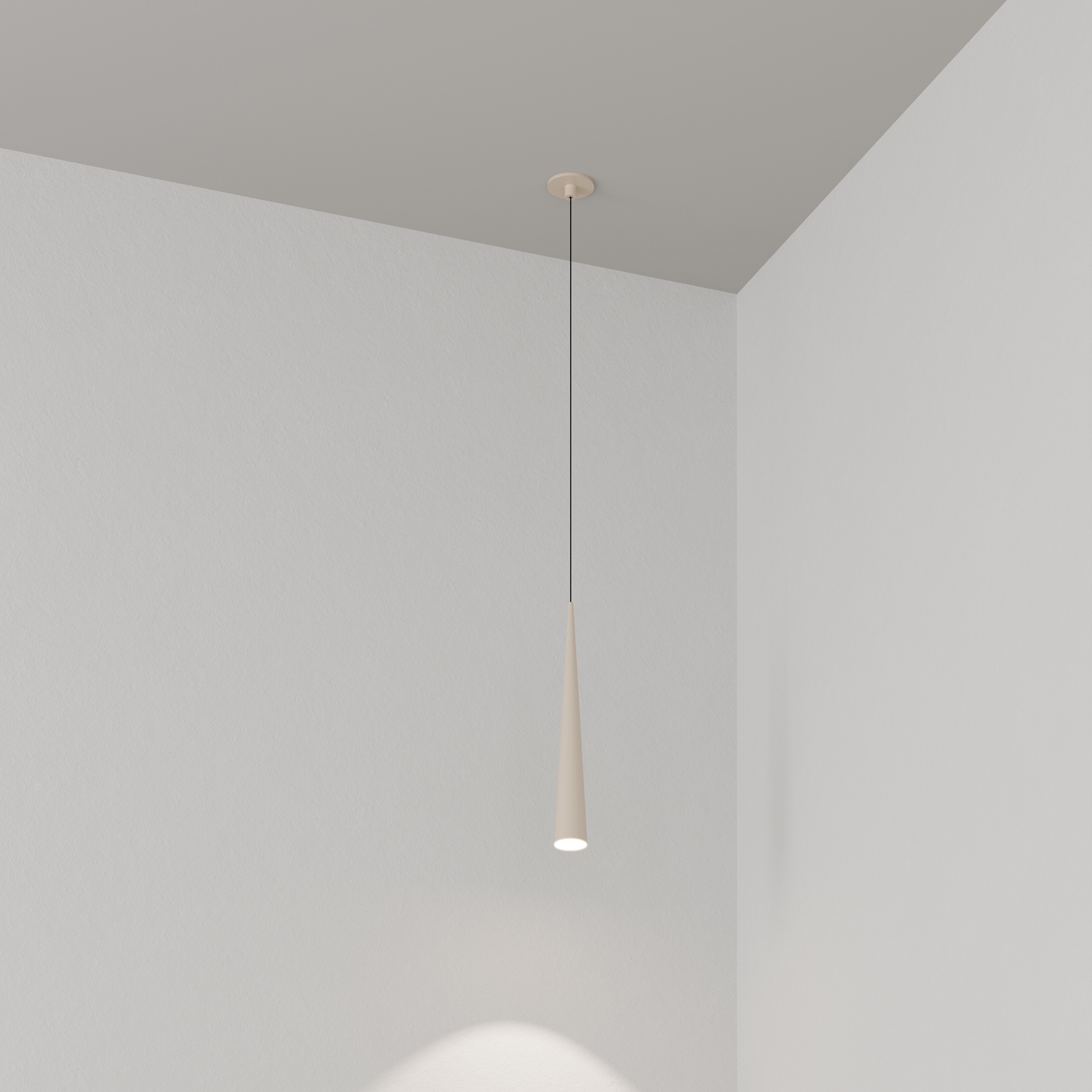 Подвесной светодиодный светильник STIRIA мощностью 5 Вт предназначен для акцентной декоративной подсветки в жилых или коммерческих помещениях. Светильник с узким углом излучения 36 градусов оригинально дополнит интерьеры кухни-гостиной или помещений отелей, кафе, ресторанов. Максимальная длина регулируемого подвеса 2000 мм. Подключение осуществляется с помощью входящего в комплект драйвера напрямую к сети переменного тока 230 В. Индекс CRI>92 отвечает за отличное восприятие и передачу цветовых оттенков. Низкая пульсация обеспечивает комфортное освещение без мерцания. Алюминиевый окрашенный корпус светильника выполнен в форме удлиненного конуса. Пылевлагозащита на уровне IP20 позволяет применять модель внутри помещений, где нет контакта с водой или другими жидкостями. Два вида монтажных чаш в комплекте позволяют установить светильник как встраиваемым способом, так и накладным.