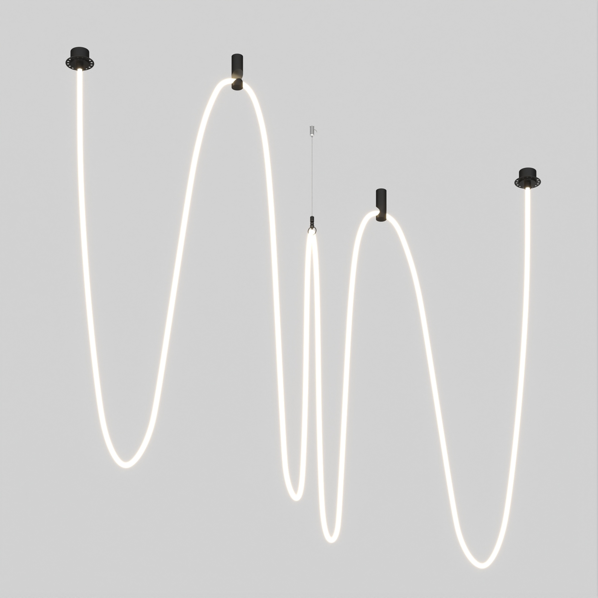 Подвесной встраиваемый светодиодный светильник TROPIC мощностью 110 Вт с уникальным корпусом из гибкого неона диаметром 18 мм. Высокий индекс цветопередачи CRI>90 и сверх широкий угол излучения 360 градусов обеспечивают качественное и оригинальное освещение с точной передачей цветовых оттенков. Силиконовый материал неона обеспечивает мягкое, равномерное освещение. Использование подвесов и креплений (приобретаются отдельно) позволяют воплотить разные идеи декоративного оформления. Корпус с защитой от пыли IP20 подходит для установки внутри помещений, где нет контакта с водой или другими жидкостями. Комбинируя светильники и располагая их на разном уровне, можно создавать оригинальные световые композиции. Встроенный блок питания позволяет быстро подключать светильник напрямую к сети 230 В. Низкая пульсация обеспечивает комфортное освещение без мерцания. Предназначен для основного и декоративного освещения в жилых, коммерческих, торговых помещениях, ресторанах или кафе.