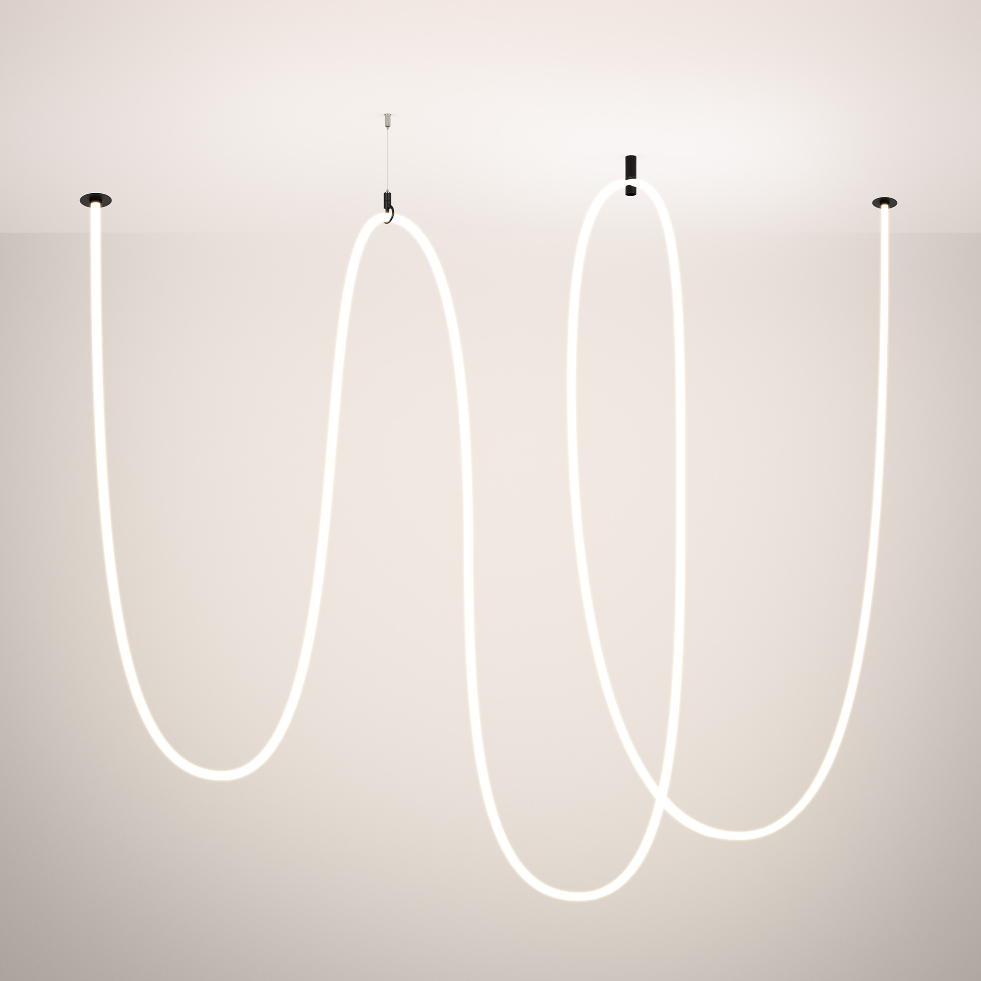 Подвесной встраиваемый светодиодный светильник TROPIC мощностью 110 Вт с уникальным корпусом из гибкого неона диаметром 18 мм. Высокий индекс цветопередачи CRI>90 и сверх широкий угол излучения 360 градусов обеспечивают качественное и оригинальное освещение с точной передачей цветовых оттенков. Силиконовый материал неона обеспечивает мягкое, равномерное освещение. Использование подвесов и креплений (приобретаются отдельно) позволяют воплотить разные идеи декоративного оформления. Корпус с защитой от пыли IP20 подходит для установки внутри помещений, где нет контакта с водой или другими жидкостями. Комбинируя светильники и располагая их на разном уровне, можно создавать оригинальные световые композиции. Встроенный блок питания позволяет быстро подключать светильник напрямую к сети 230 В. Низкая пульсация обеспечивает комфортное освещение без мерцания. Предназначен для основного и декоративного освещения в жилых, коммерческих, торговых помещениях, ресторанах или кафе.
