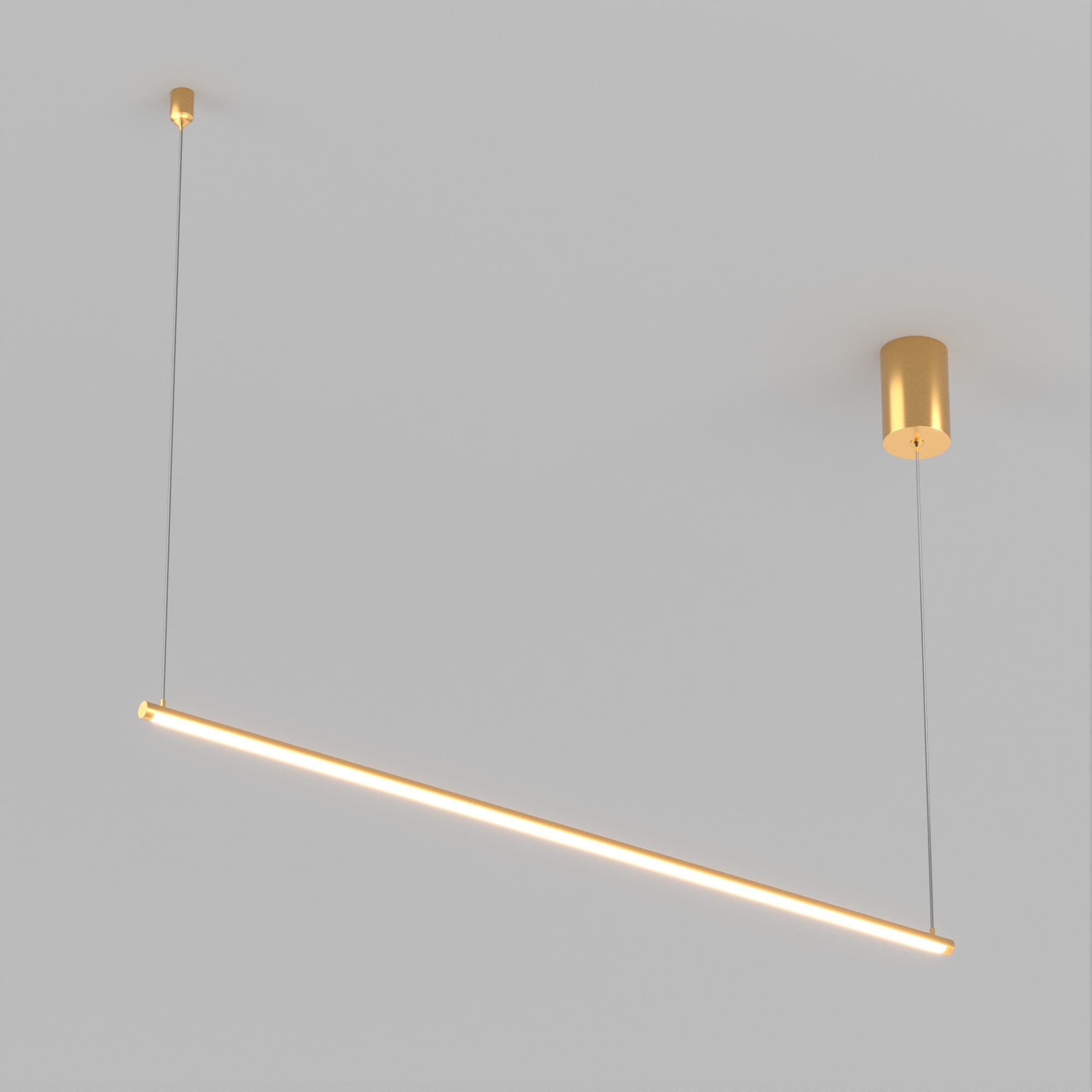 Декоративный подвесной светильник мощностью 15 Вт с дневным белым цветом свечения (4000 К). Сбалансированный минималистичный дизайн и высокая световая эффективность. Горизонтальное свечение вниз. Золотой изящный корпус из металла длиной 910 мм на регулируемом тросе стильно смотрится в жилых и офисных помещениях. Регулируемая длина подвеса позволяет размещать светильники на разной высоте и подстраивать их под высоту потолков. Световой поток 531 лм и высокий индекс цветопередачи (CRI>90) для качественного освещения. Драйвер в комплекте для подключения к сети 230 В.