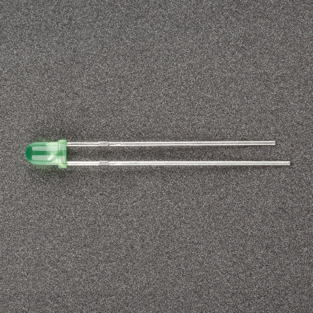 Выводной светодиод круглый, d=3 мм, диффузная зеленая линза.Мигающий, цвет свечения зеленый (525 нм).