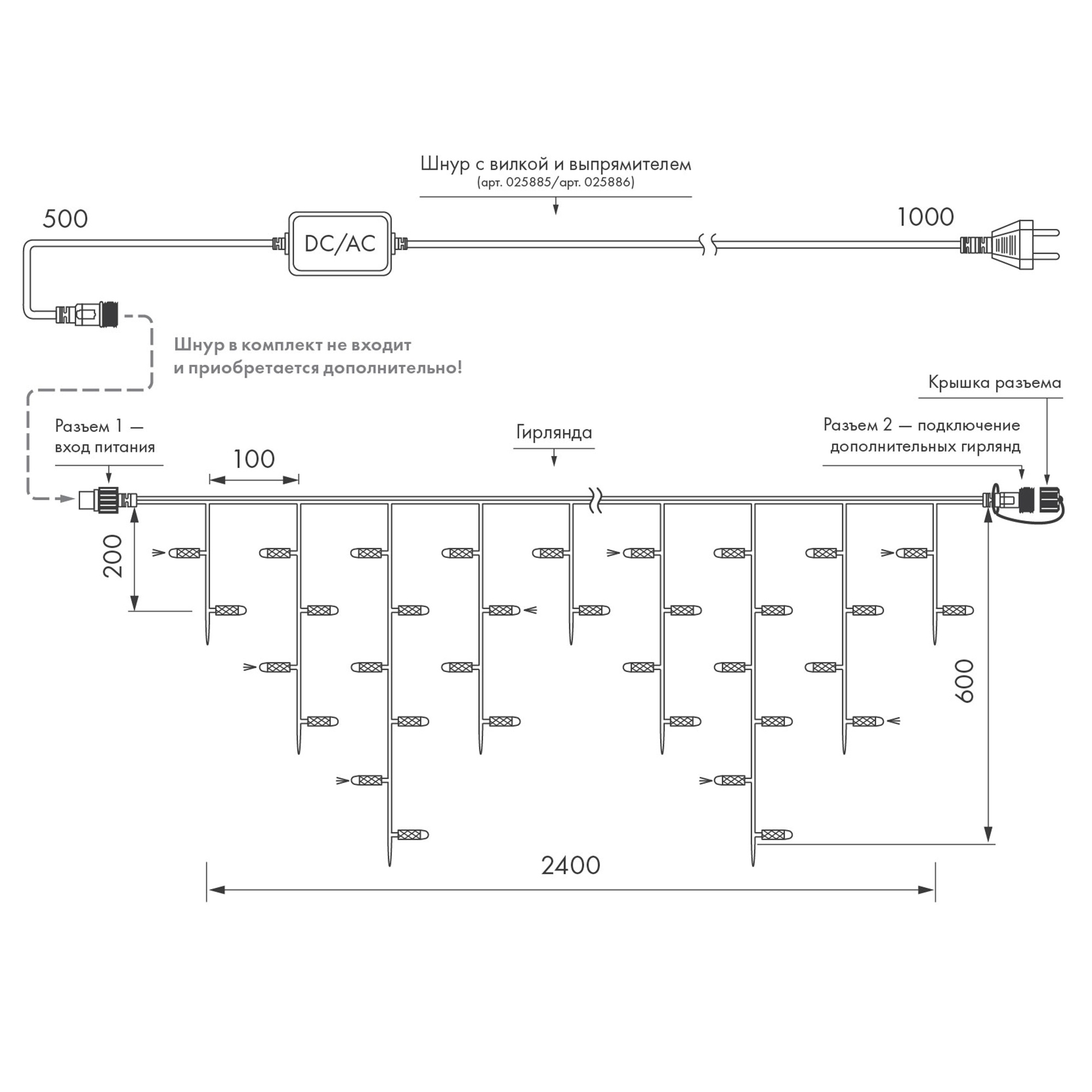 Характеристики - Светодиодная гирлянда ARD-EDGE-CLASSIC-2400x600-WHITE-88LED-MILK-FLASH White (230V, 6W) (Ardecoled, IP65)