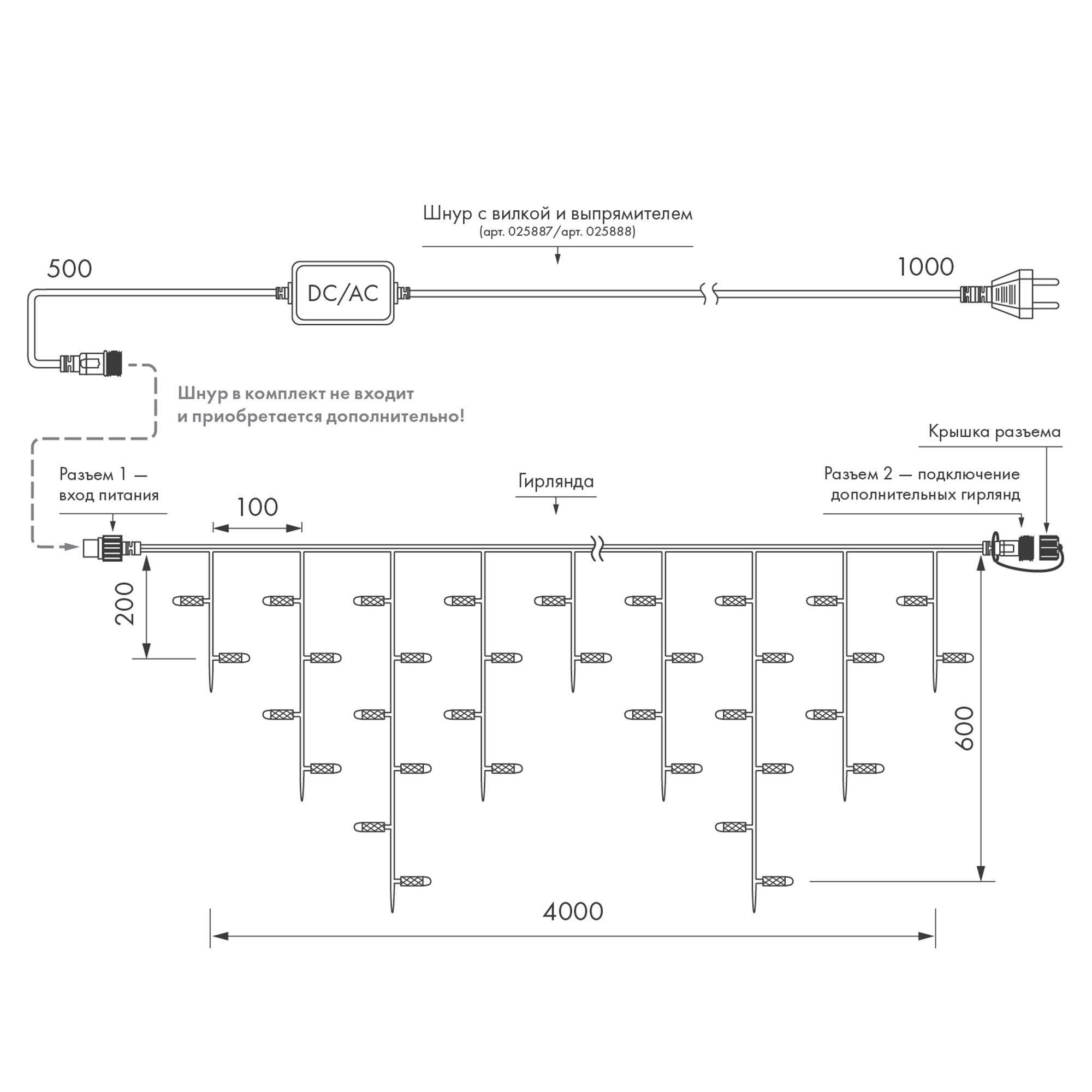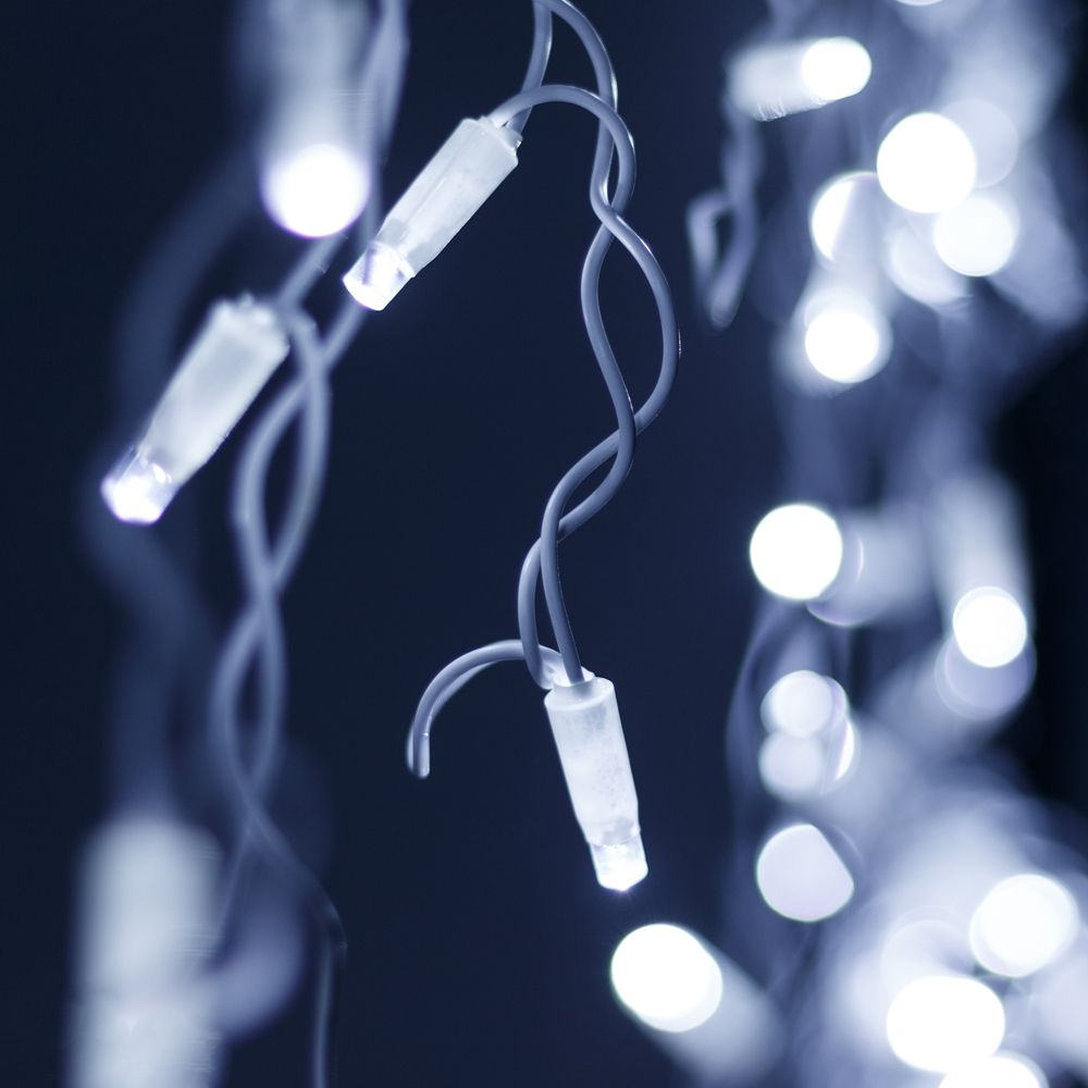Универсальная светодиодная гирлянда "БАХРОМА" серии Pro отлично подходит для украшения и создания праздничной атмосферы как внутри помещений, так и снаружи (степень пылевлагозащиты IP65 позволяет размещать гирлянду на улице под навесом). Имея размеры 4000 x 600 мм, она может использоваться для оформления средних и больших площадей. Универсальные соединительные разъемы позволяют наращивать длину до 50 м без использования дополнительных аксессуаров.Выпуклая молочно-белая линза и эффект непрерывного свечения обеспечивают мягкое, спокойное и равномерное освещение украшаемых объектов. Холодный белый свет помогает создать необходимую атмосферу для декоративного объекта. Провод изготовлен из резины и окрашен в белый цвет. Аксессуары для подключения гирлянды к сети приобретаются отдельно.
