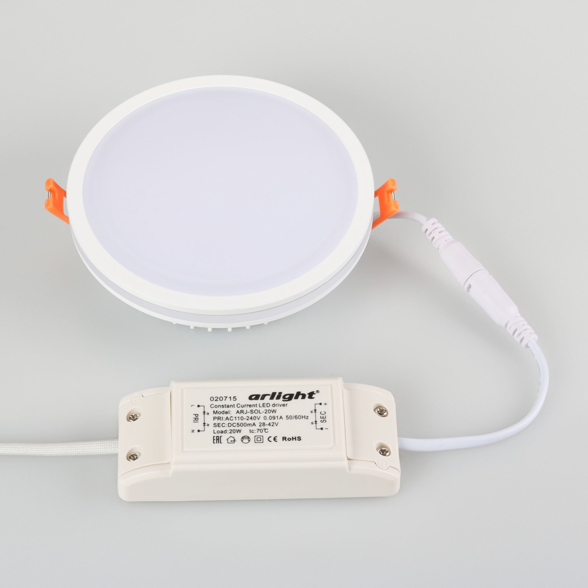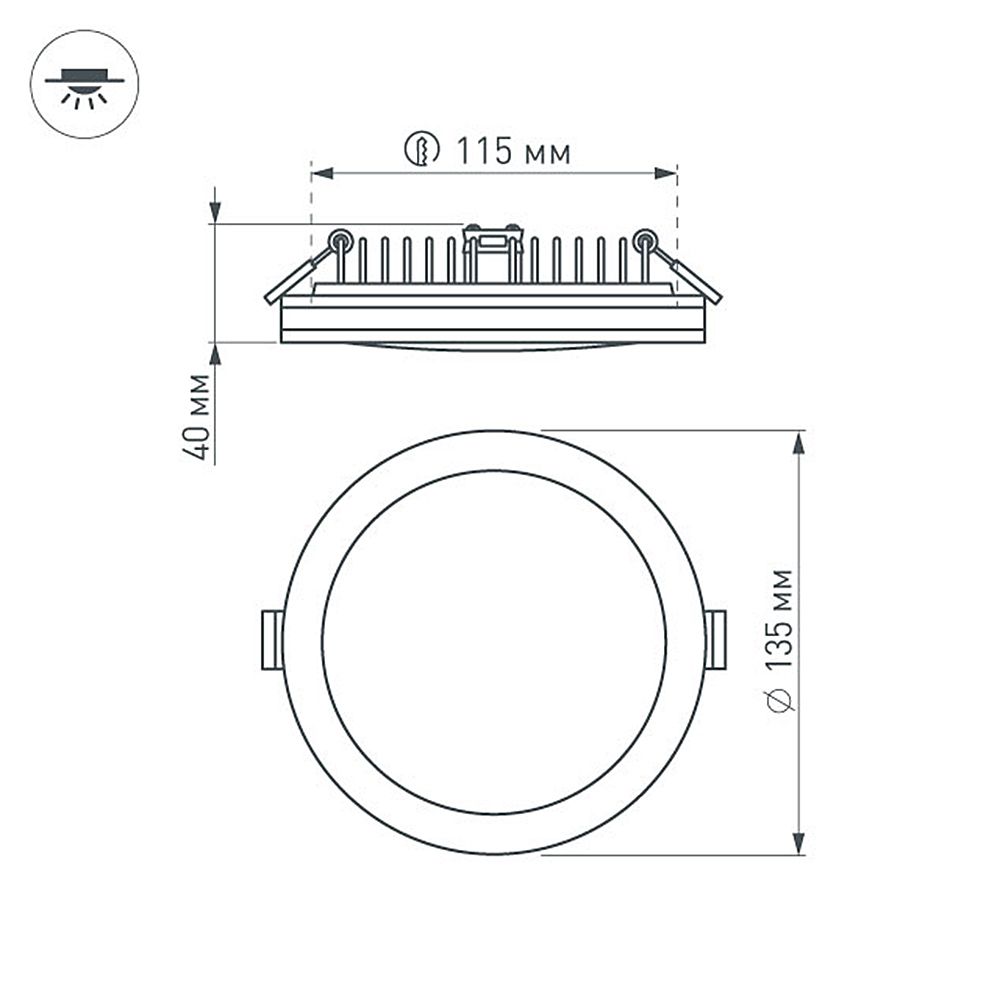 Встраиваемый круглый светодиодный светильник LTD-135SOL-20W Warm White мощностью 20 Вт с теплым белым цветом свечения (3000 К) и светящимся контуром для создания основного и декоративного освещения. Оригинальный дизайн корпуса с декоративной вставкой из поликарбоната дополнит любой интерьер. Тонкий корпус светильника со степенью пылевлагозащиты IP44 и компактный драйвер, поставляемый в комплекте, позволяют встраивать светильник в натяжные и гипсокартонные потолки. У светильника 2 типа освещения: боковое с углом излучения 120° и основное с углом излучения 180°. Индекс цветопередачи CRI>80, световой поток 1400–1600 лм и матовый рассеиватель обеспечивают мягкий равномерный свет. Светильник легко устанавливается с помощью пружин в монтажное отверстие диаметром 125 мм и минимальной высотой 40 мм. Светильник с эффектным светящимся контуром станет оригинальным элементом современного интерьера и обеспечит основное и декоративное освещение в любых типах помещений.