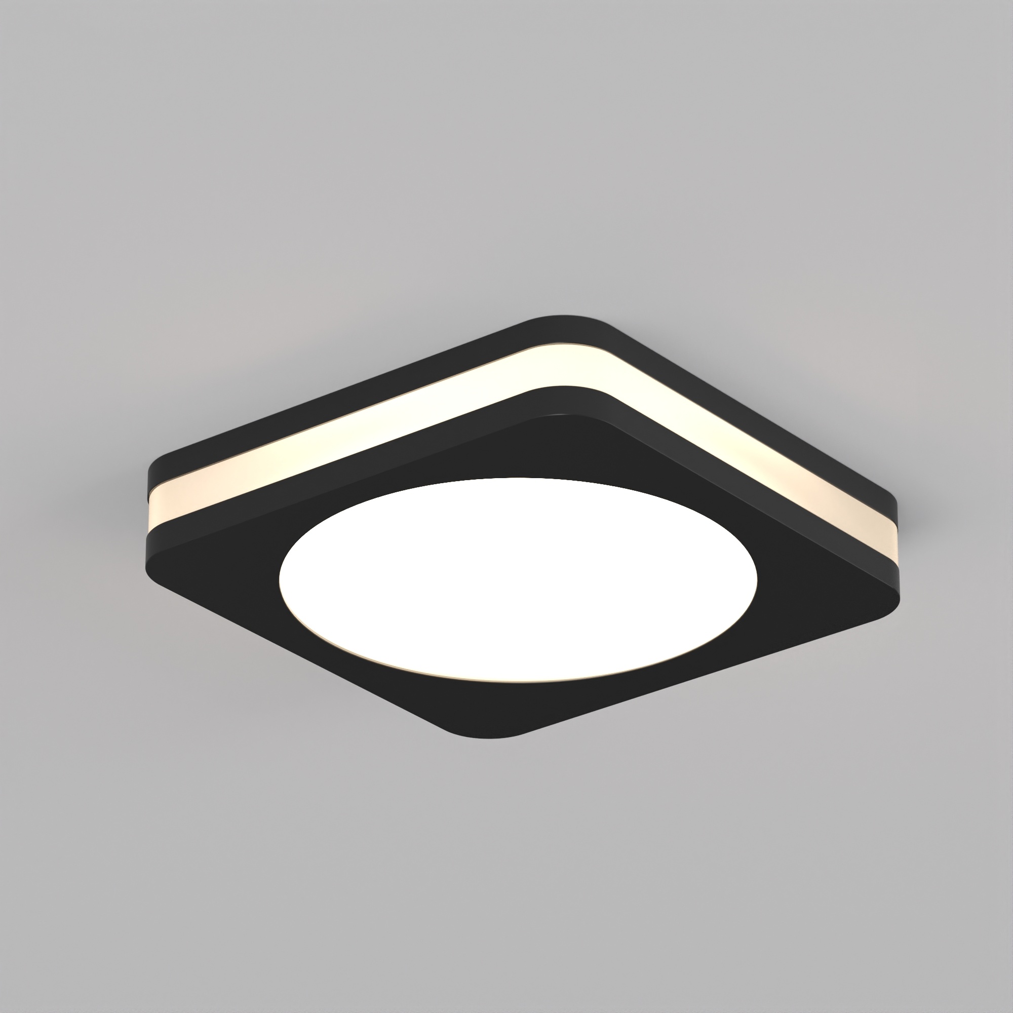 Встраиваемый квадратный светодиодный светильник LTD-80×80SOL-BK-5W Warm White мощностью 5 Вт с теплым белым цветом свечения (3000 К) и светящимся контуром для создания основного и декоративного освещения. Оригинальный дизайн корпуса с декоративной вставкой из акрила дополнит любой интерьер. Тонкий корпус светильника со степенью пылевлагозащиты IP44 и компактный драйвер, поставляемый в комплекте, позволяют встраивать светильник в натяжные и гипсокартонные потолки. У светильника 2 типа освещения: боковое с углом излучения 120° и основное с углом излучения 180°. Индекс цветопередачи CRI>80, световой поток 325 лм и матовый рассеиватель обеспечивают мягкий равномерный свет. Светильник легко устанавливается с помощью пружин в монтажное отверстие размером 65×65 мм и минимальной высотой 40 мм.