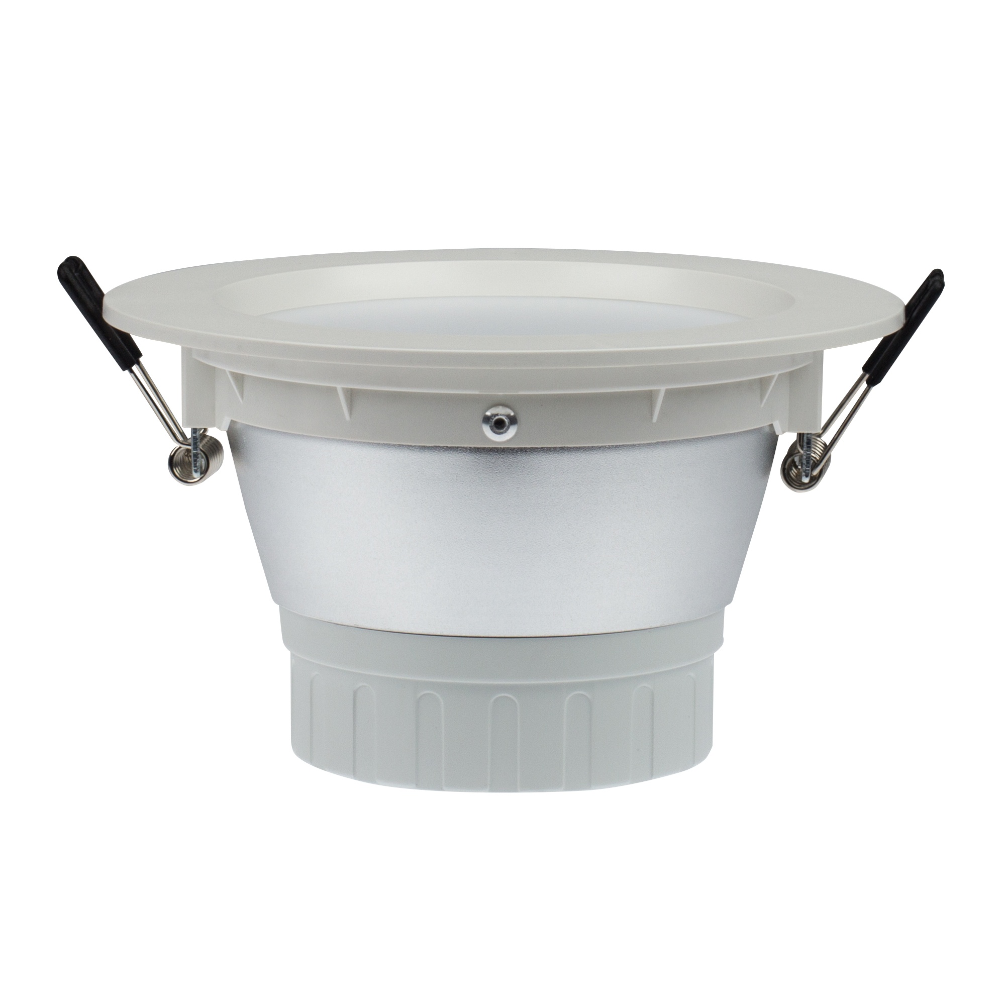 Встраиваемый светильник, матовый рассеиватель, светодиод 9Вт, БЕЛЫЙ 5000-6000К, св.поток 560лм, угол 110 градусов. Питание 100-240В, встроенный драйвер. Размеры 142х85 мм, отверстие для установки 120мм.