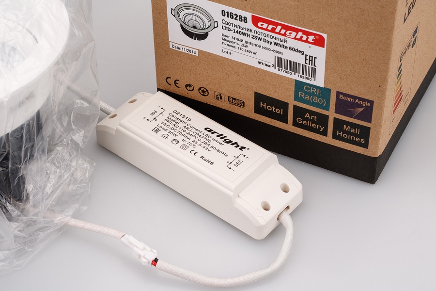 Характеристики - Светодиодный светильник LTD-140WH 25W Day White 60deg (Arlight, IP40 Металл, 3 года)
