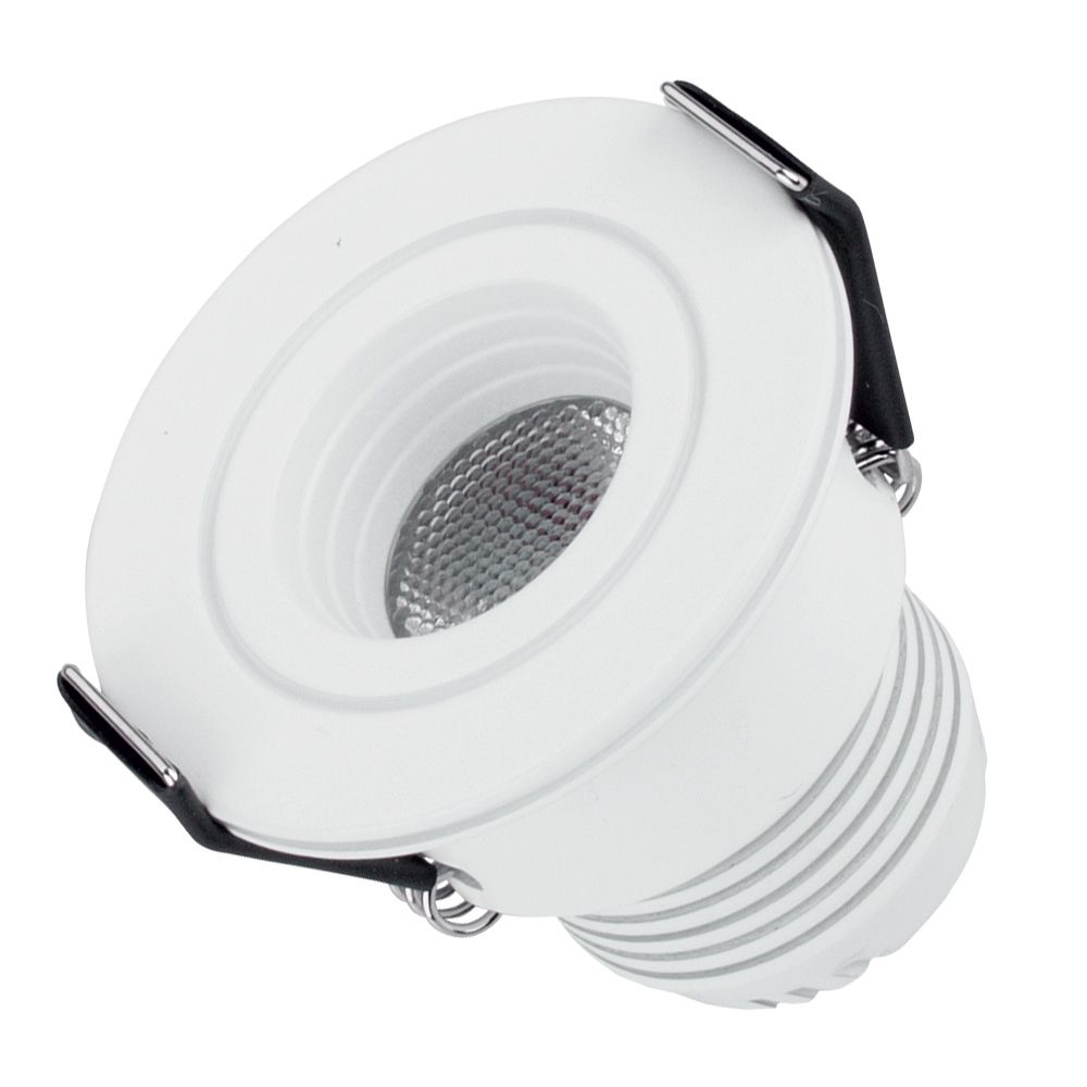 Компактный врезной мебельный светильник LTM-R45WH 3W Day White 30deg мощностью 3 Вт с дневным белым цветом свечения (4000–4500 К) для встраивания в мебель, гипсокартонные конструкции и другие поверхности в жилых и общественных помещениях. Светильник с узким углом излучения 30°, световым потоком 140–160 лм и индексом цветопередачи CRI>80. Легко монтируется в установочное отверстие диаметром 39 мм с помощью пружин. Драйвер для подключения поставляется в комплекте. Возможна регулировка яркости после замены штатного драйвера на диммируемый.