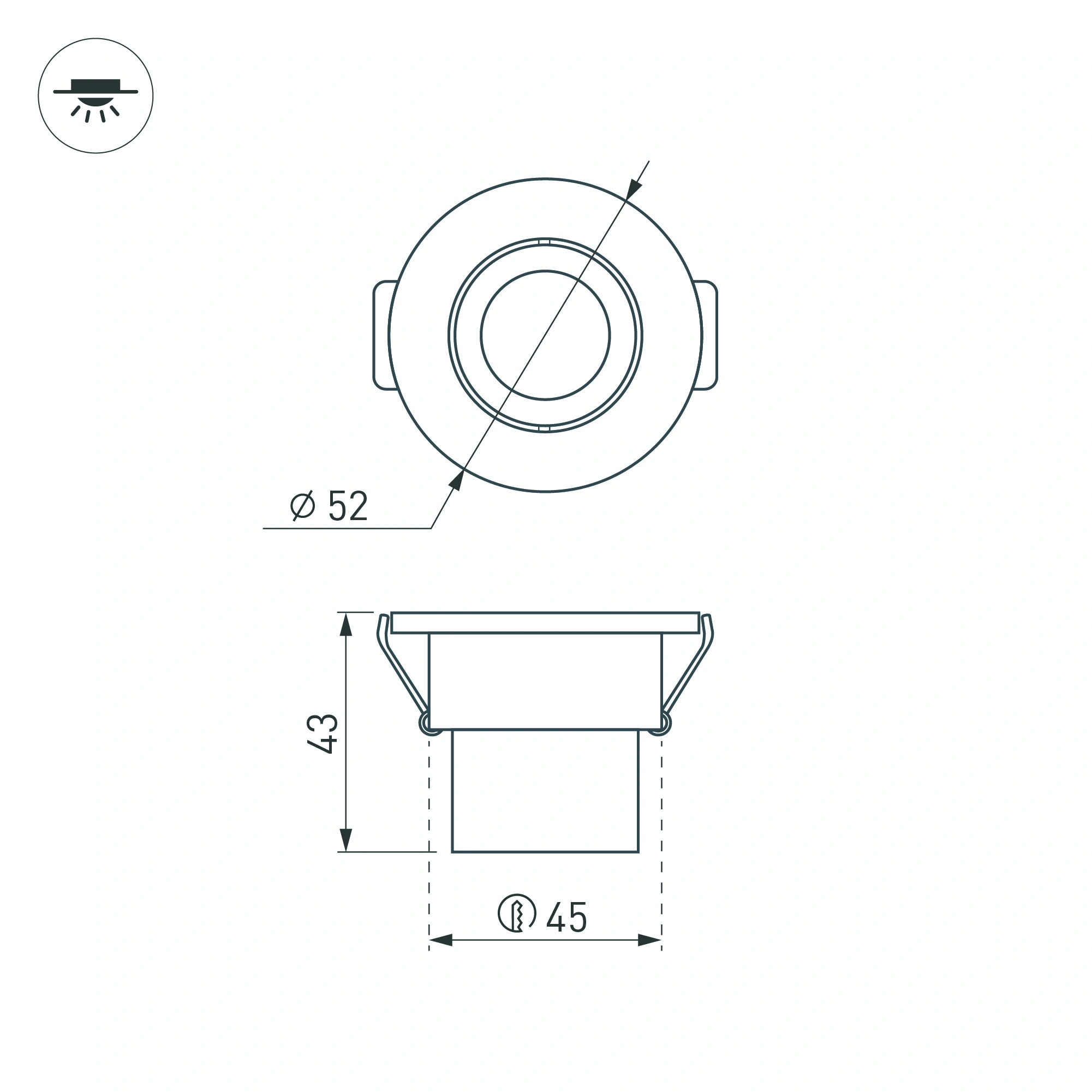 Компактный врезной мебельный светильник LTM-R52WH 3W White 30deg мощностью 3 Вт с белым цветом свечения (5500–6000 К) для встраивания в мебель, гипсокартонные конструкции и другие поверхности в жилых и общественных помещениях. Светильник с узким углом излучения 30°, световым потоком 140–160 лм и индексом цветопередачи CRI>80. Легко монтируется в установочное отверстие диаметром 45 мм с помощью пружин. Драйвер для подключения поставляется в комплекте. Возможна регулировка яркости после замены штатного драйвера на диммируемый.