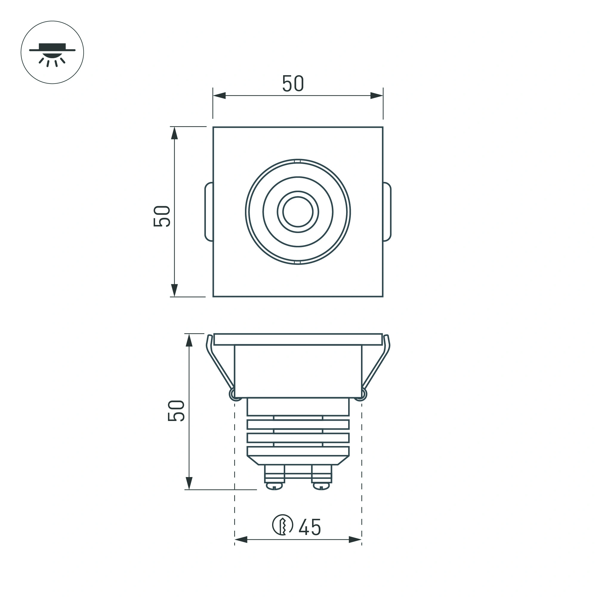 Характеристики - Светодиодный светильник LTM-S50x50WH 5W Warm White 25deg (Arlight, IP40 Металл, 3 года)