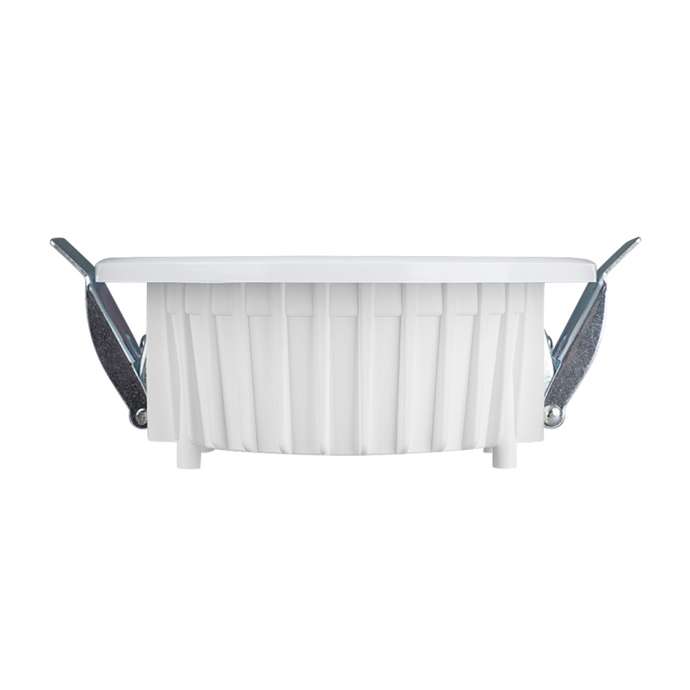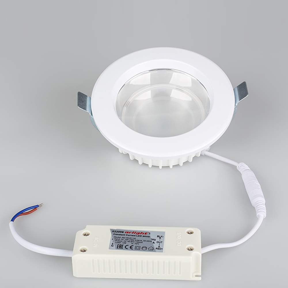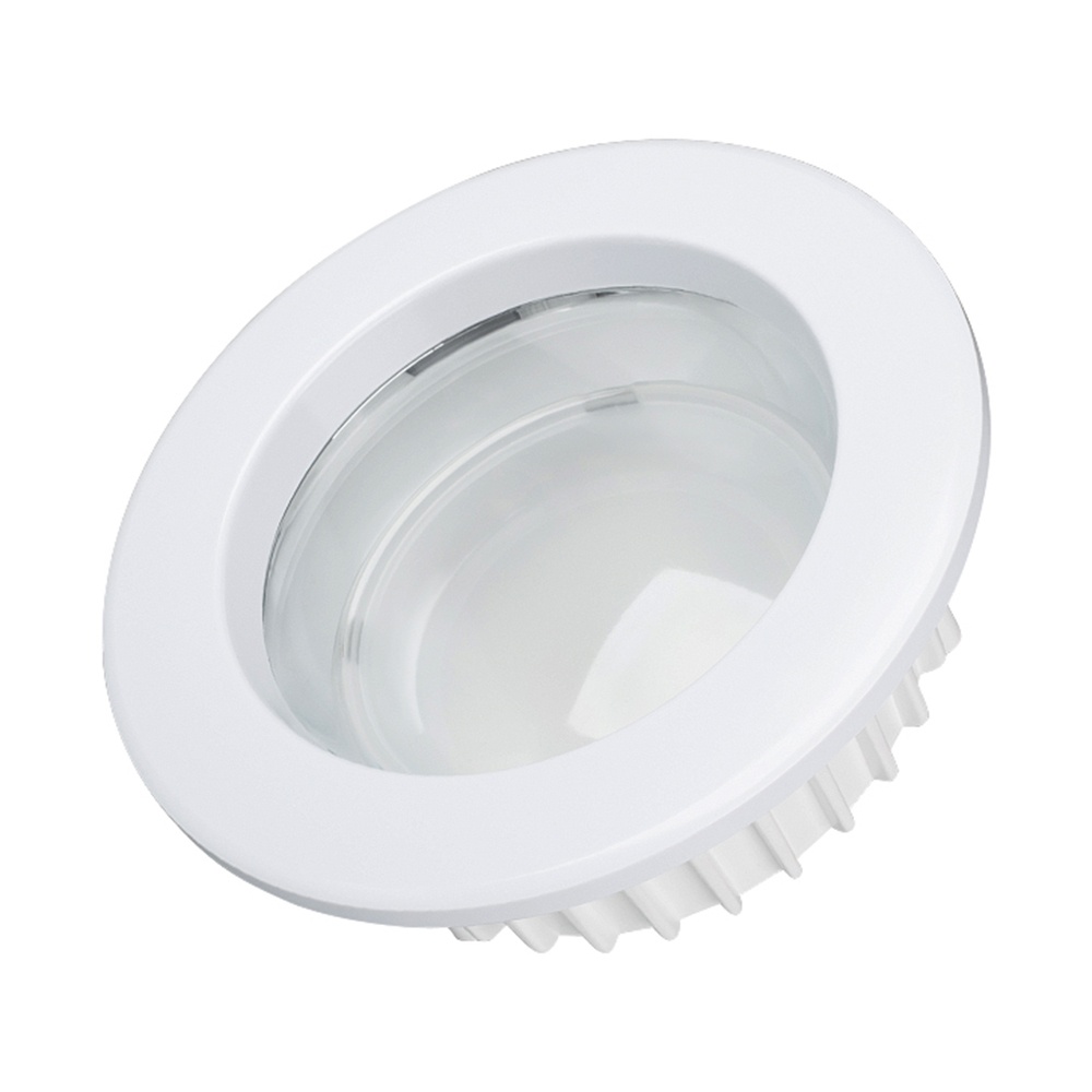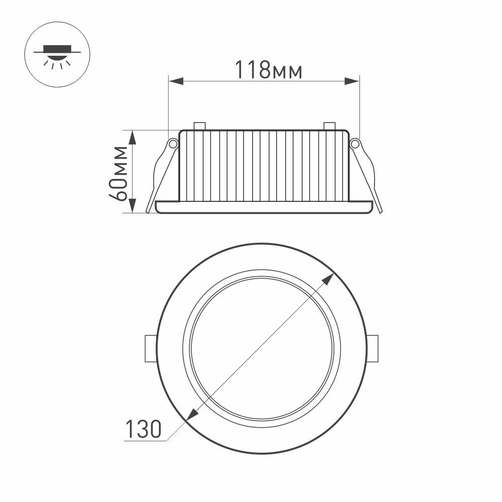 Даунлайт, угол 90° / 12Вт/ БЕЛЫЙ 6000K / LED 2835 24шт / 1035 лм / CRI>80. Белый корпус, алюминий, опрессованный в термопласт. Питание AC 100-240V (драйвер в к-те 140-150mA 40-85V). Габариты: (d)130х(h)60 мм, врезное отверстие 118 мм.