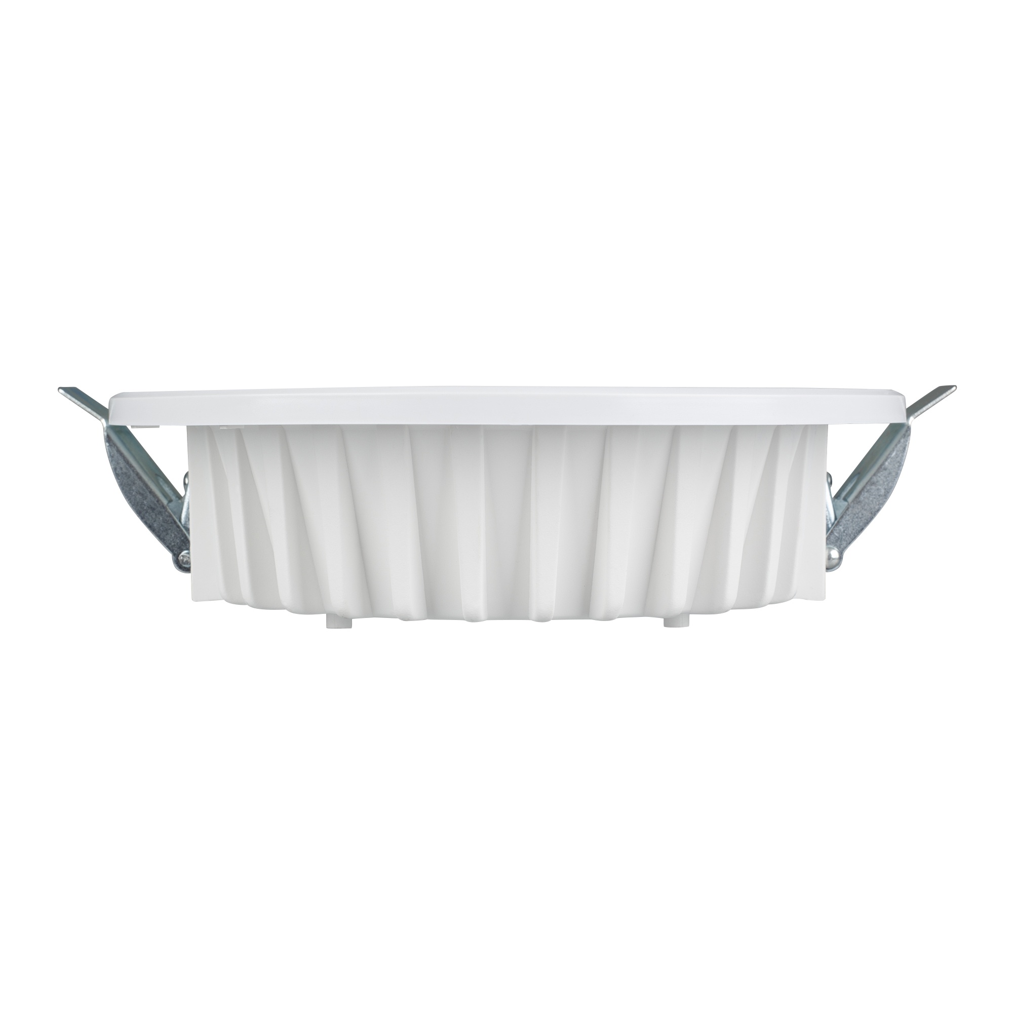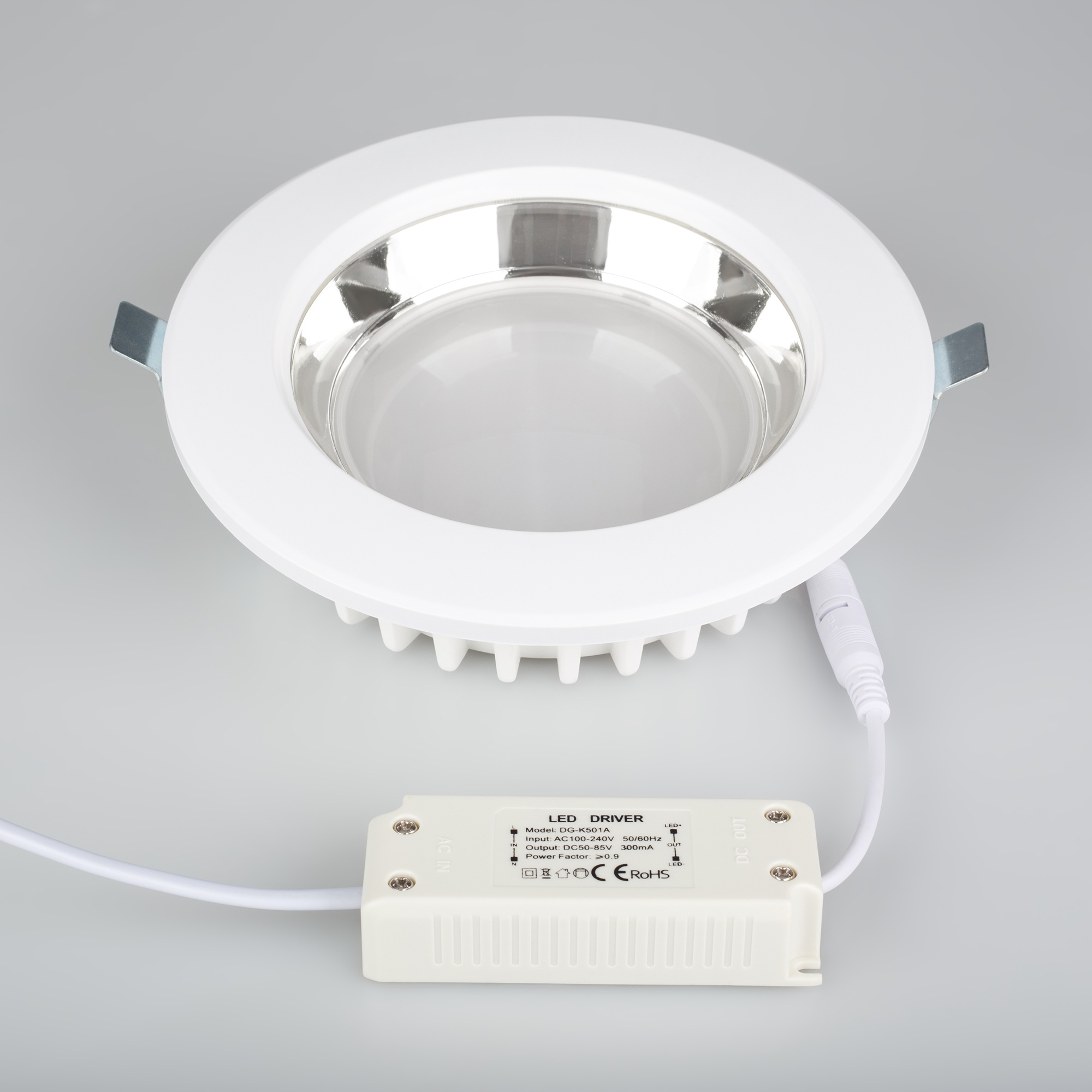 Даунлайт, угол 90° / 25Вт/ ТЕПЛЫЙ БЕЛЫЙ 3000K / LED 2835 48шт / 1940 лм / CRI>80. Белый корпус, алюминий, опрессованный в термопласт. Питание AC 100-240V (драйвер в к-те 280-300mA 80V). Габариты: (d)190х(h)75 мм, врезное отверстие 165 мм.