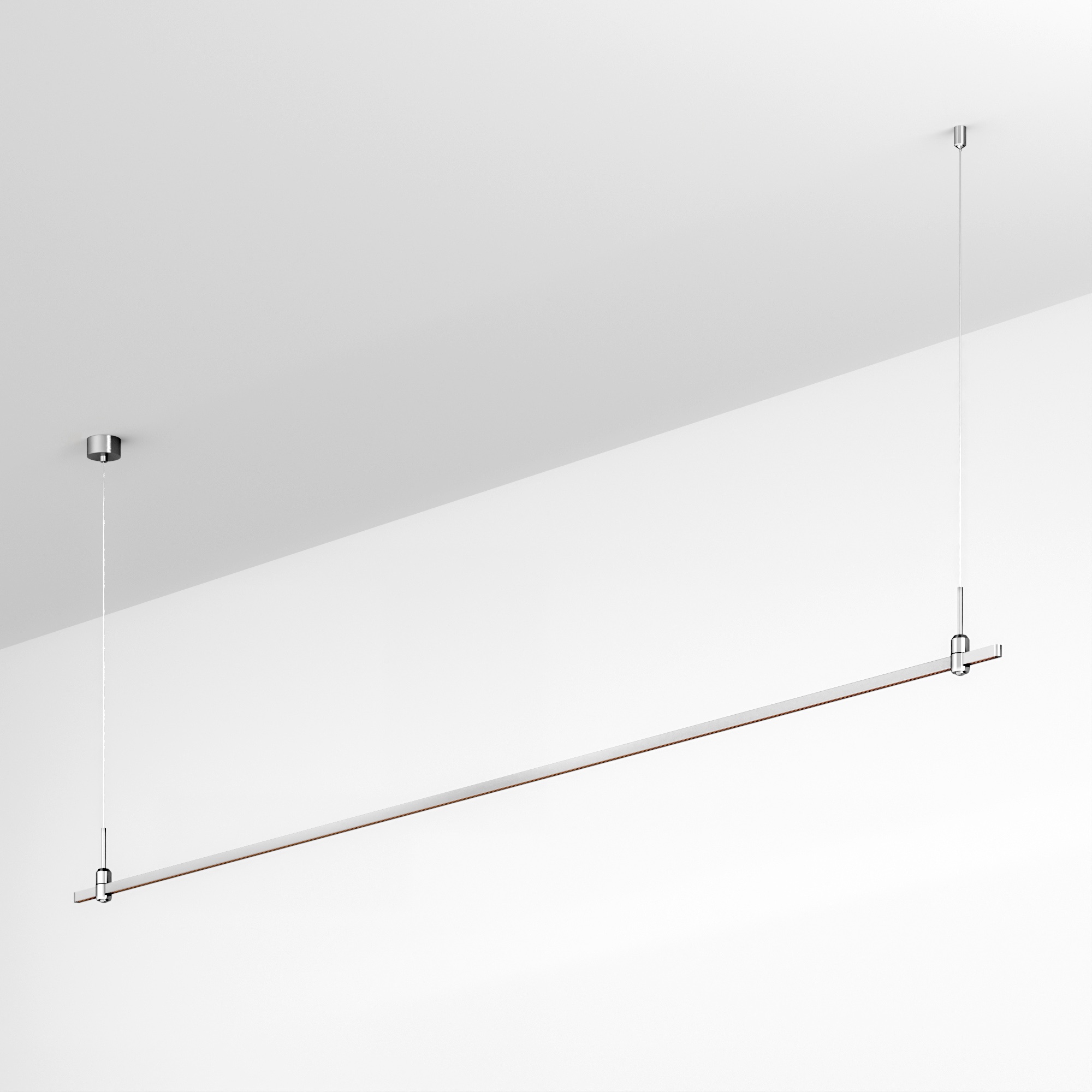 Подвесная линейная конструкция APRIORI. В комплекте трек с аксессуарами и гибкими подвесами длиной 1500мм. Размер ДxШxВ: 3000x17x22мм. Размер (с учетом заглушек) ДxШxВ: 3021x17x22мм. Монтируется подвесным способом. Для установки необходима фиксация на потолочной поверхности с использованием трех опорных точек подвеса. Шинопровод рассчитан на работу с безопасным напряжением DC48В. Изготавливается из алюминия, анодированного в цвет титан. Светильники и источники питания приобретаются отдельно.
