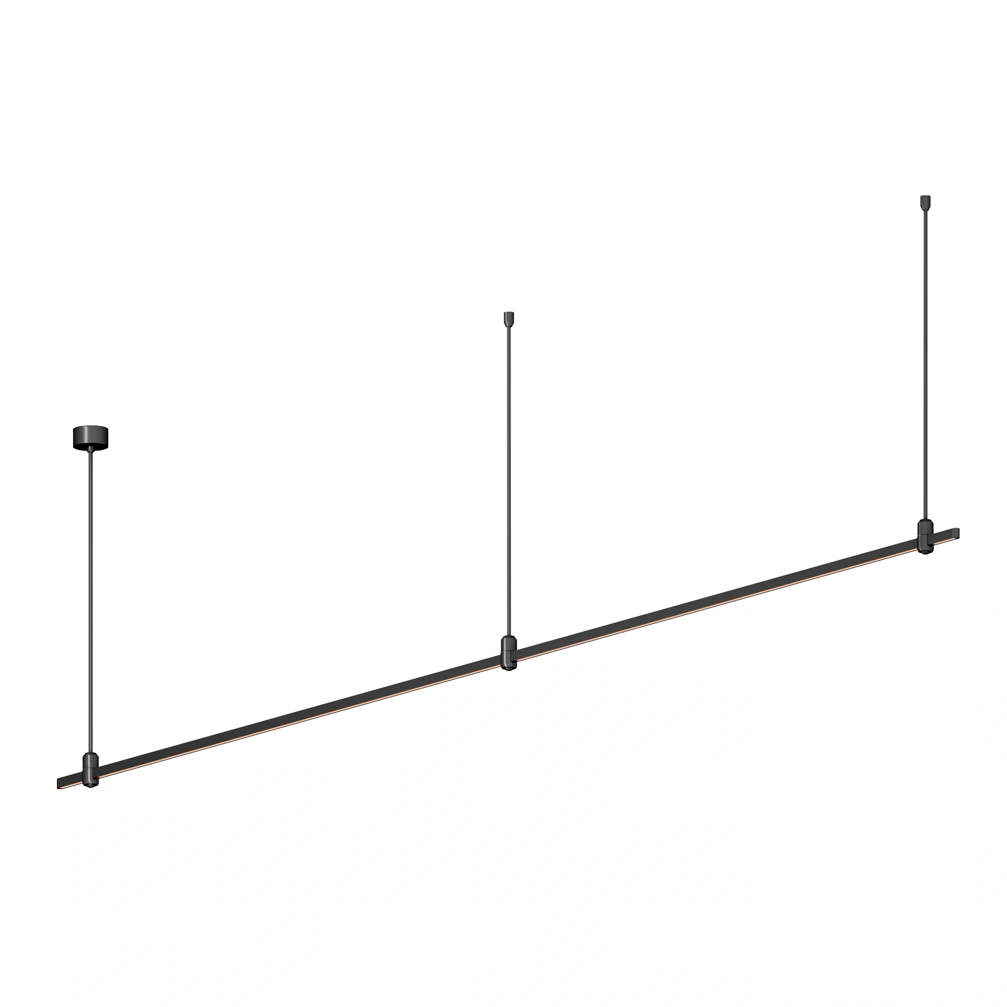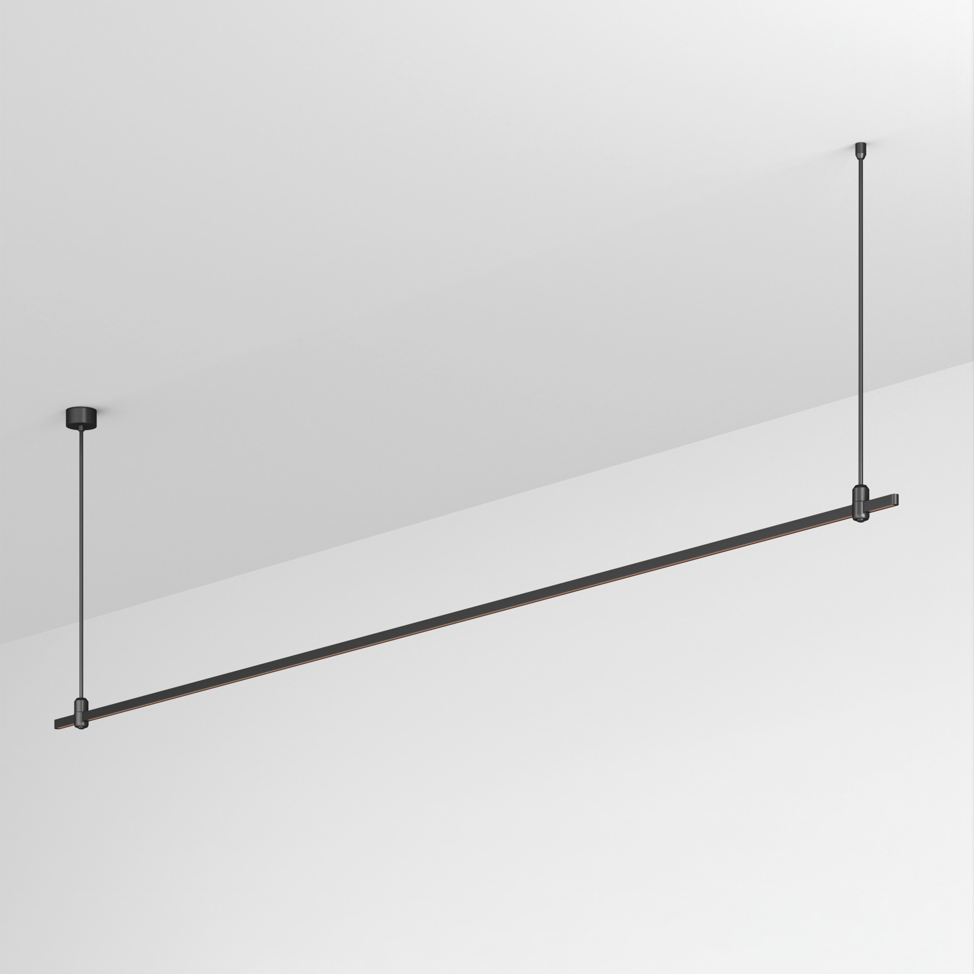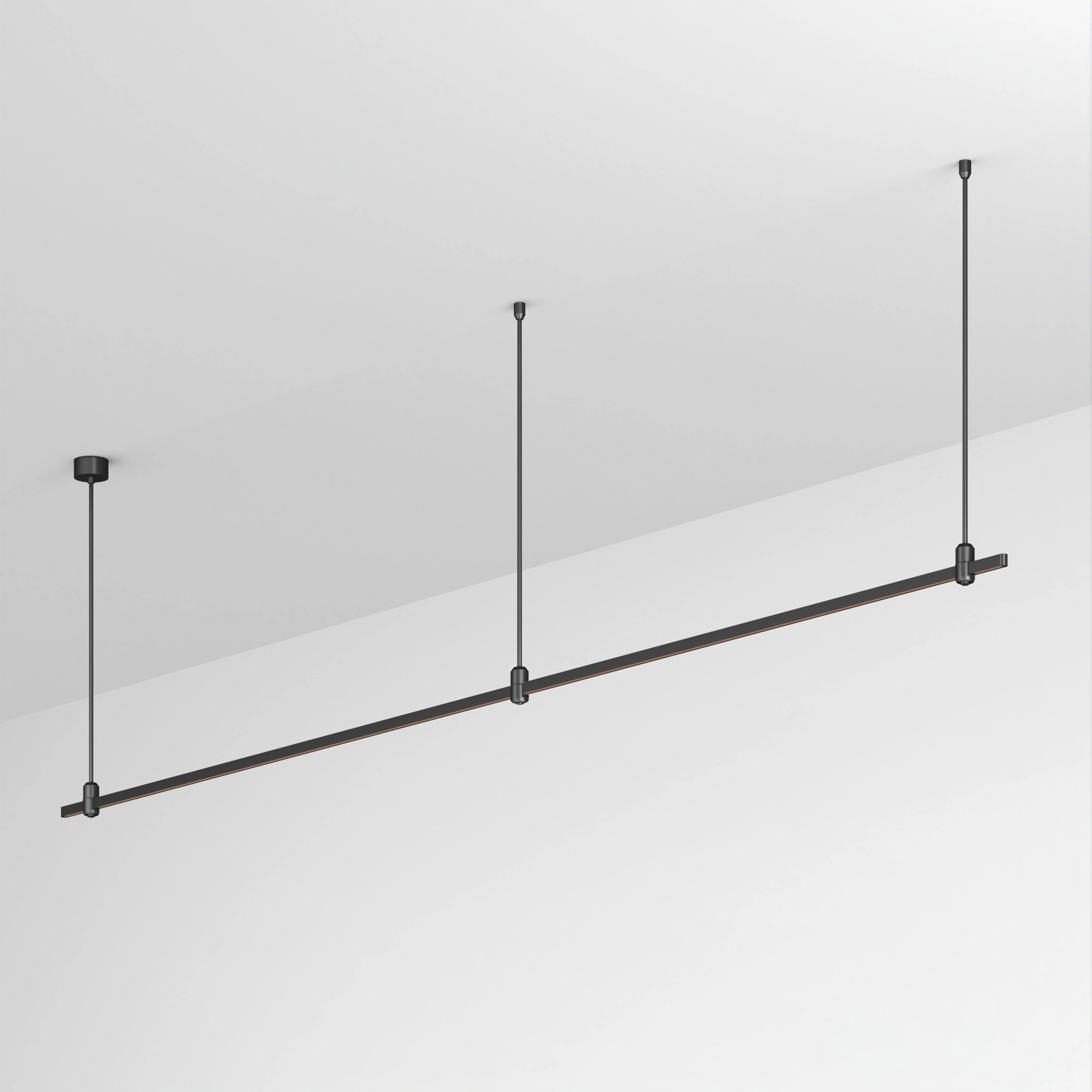 Подвесная линейная конструкция APRIORI. В комплекте трек с аксессуарами и жесткими подвесами длиной 800мм. Размер ДxШxВ: 3000x17x22мм. Размер (с учетом заглушек) ДxШxВ: 3021x17x22мм. Монтируется подвесным способом. Для установки необходима фиксация на потолочной поверхности с использованием трех опорных точек подвеса. Шинопровод рассчитан на работу с безопасным напряжением DC48В. Изготавливается из алюминия, цвет черный. Светильники и источники питания приобретаются отдельно.