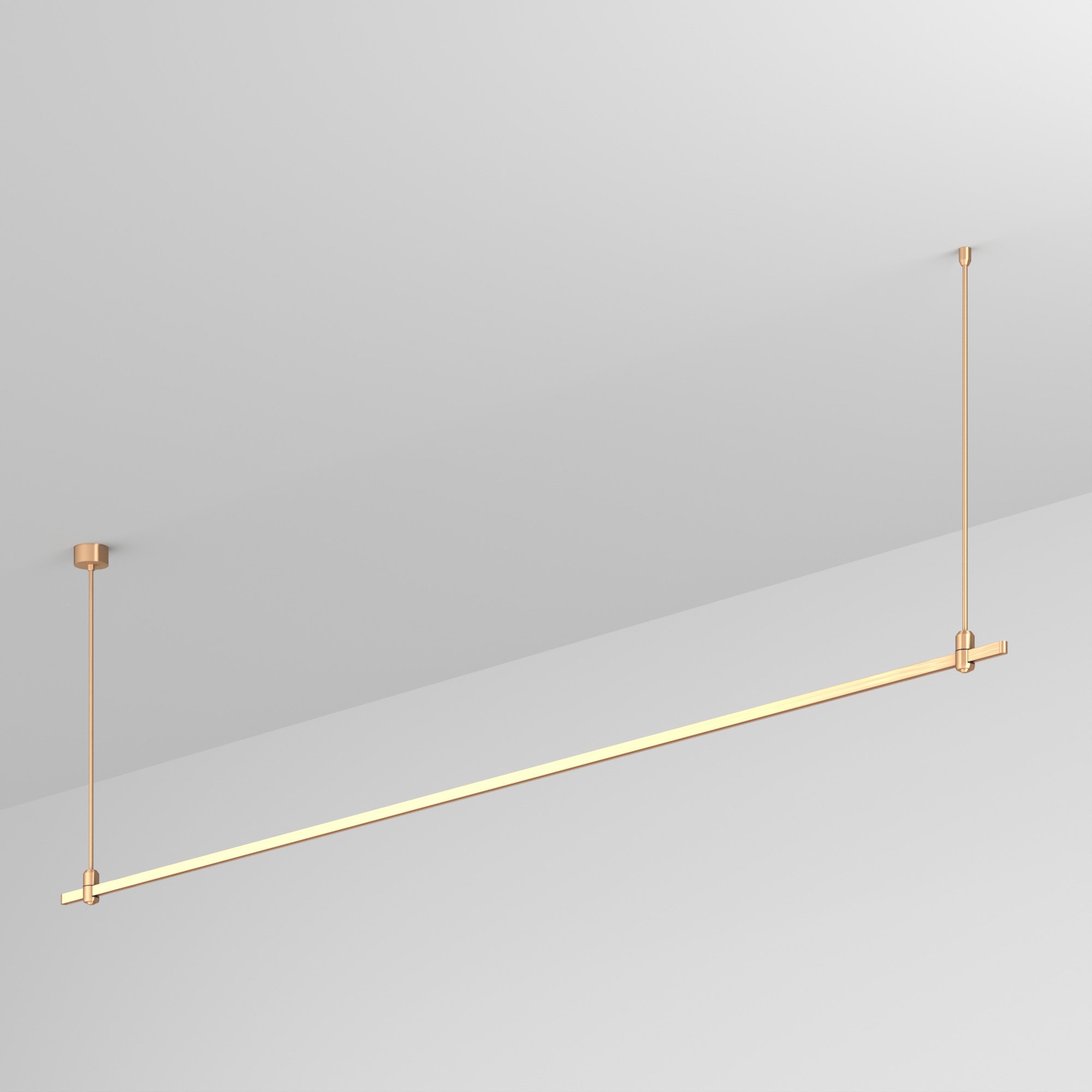 Подвесная линейная конструкция APRIORI. В комплекте трек с аксессуарами и жесткими подвесами длиной 800мм. Размер ДxШxВ: 3000x17x22мм. Размер (с учетом заглушек) ДxШxВ: 3021x17x22мм. Монтируется подвесным способом. Для установки необходима фиксация на потолочной поверхности с использованием трех опорных точек подвеса. Шинопровод рассчитан на работу с безопасным напряжением DC48В. Изготавливается из алюминия, гальванизированного в цвет светлое золото. Светильники и источники питания приобретаются отдельно.