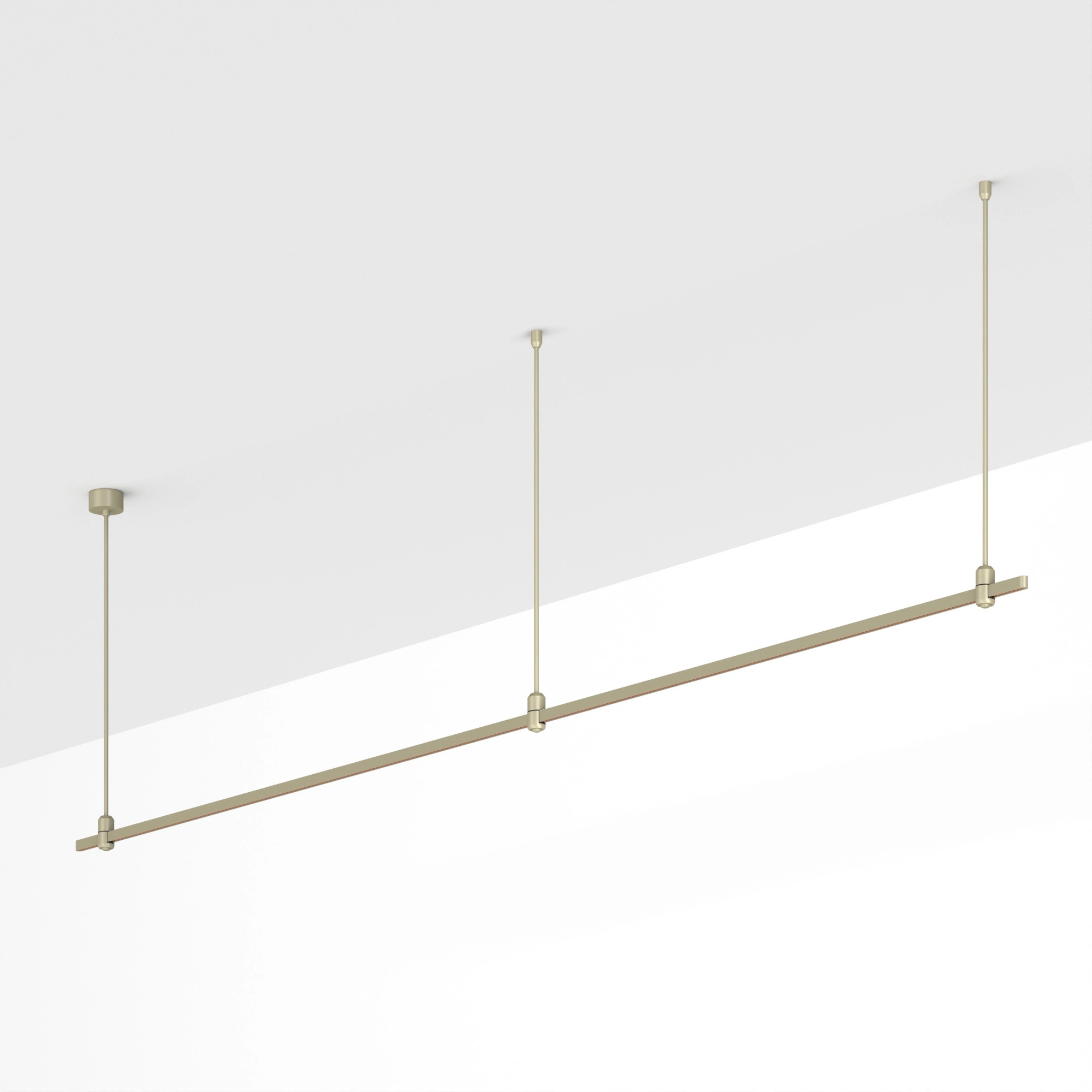 Подвесная линейная конструкция APRIORI. В комплекте трек с аксессуарами и жесткими подвесами длиной 800мм. Размер ДxШxВ: 3000x17x22мм. Размер (с учетом заглушек) ДxШxВ: 3021x17x22мм. Монтируется подвесным способом. Для установки необходима фиксация на потолочной поверхности с использованием трех опорных точек подвеса. Шинопровод рассчитан на работу с безопасным напряжением DC48В. Изготавливается из алюминия, анодированного в цвет серо-оливковый. Светильники и источники питания приобретаются отдельно.