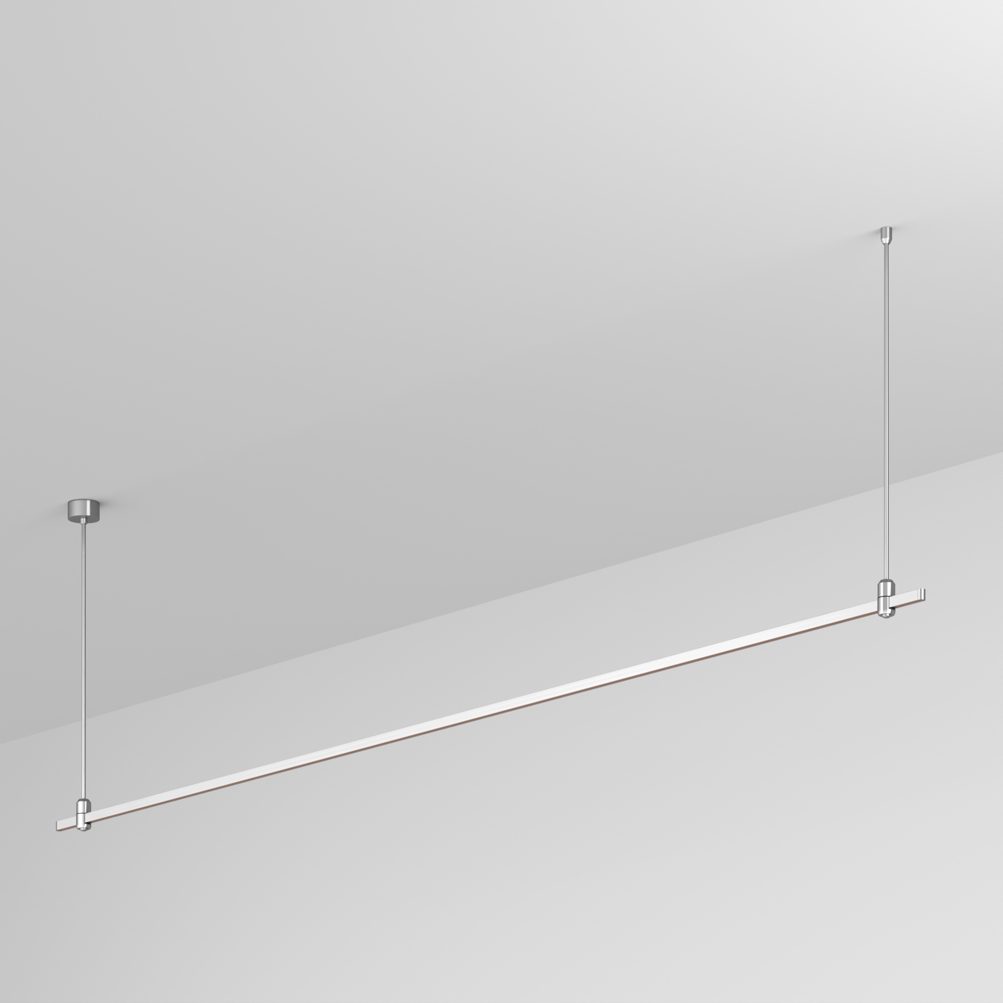 Подвесная линейная конструкция APRIORI. В комплекте трек с аксессуарами и жесткими подвесами длиной 800мм. Размер ДxШxВ: 3000x17x22мм. Размер (с учетом заглушек) ДxШxВ: 3021x17x22мм. Монтируется подвесным способом. Для установки необходима фиксация на потолочной поверхности с использованием трех опорных точек подвеса. Шинопровод рассчитан на работу с безопасным напряжением DC48В. Изготавливается из алюминия, анодированного в цвет титан. Светильники и источники питания приобретаются отдельно.