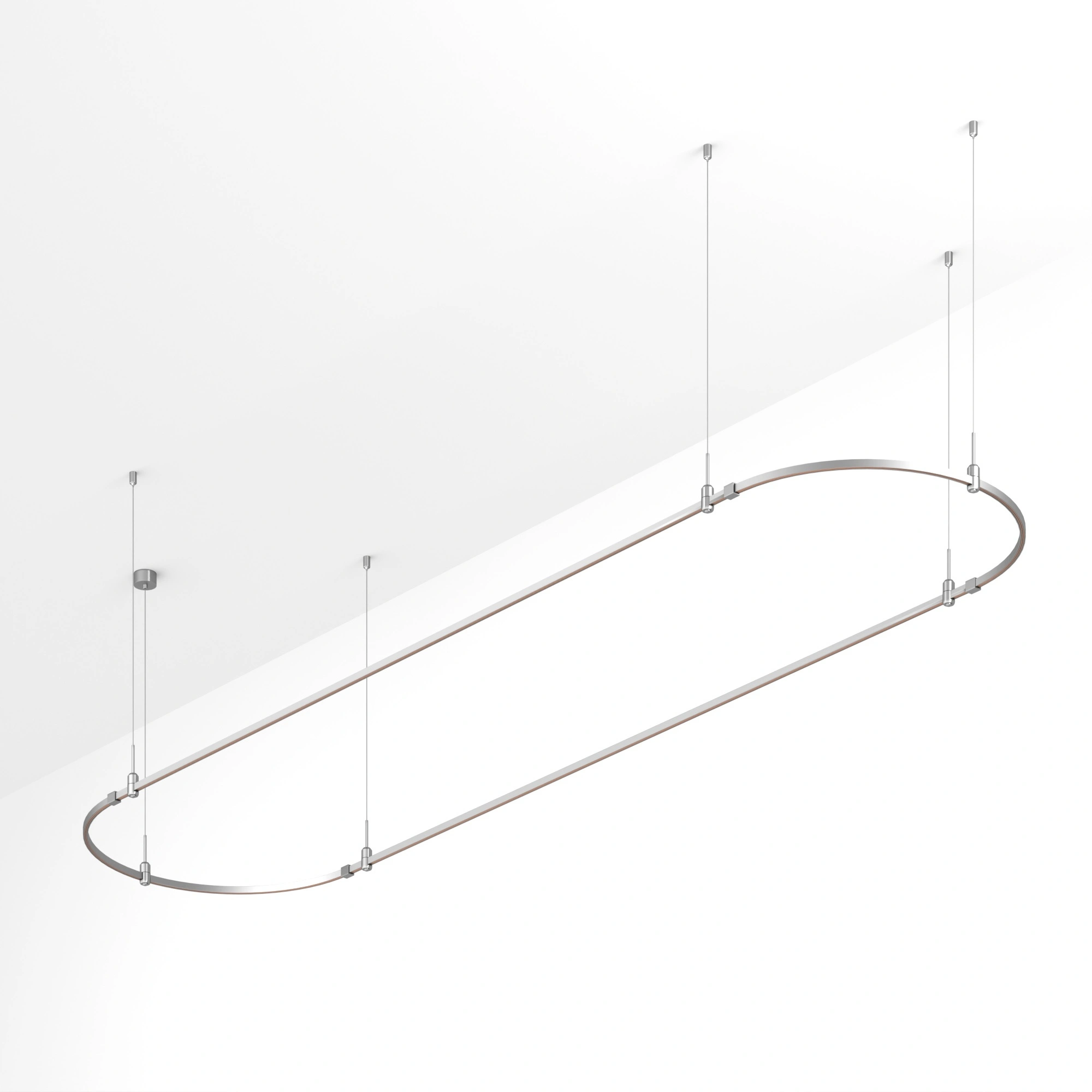 Подвесная конструкция APRIORI, форма овал. В комплекте треки с аксессуарами и гибкими подвесами длиной 1500мм. Размер ДxШxВ: 4000x1000x22мм. Монтируется подвесным способом. Шинопровод рассчитан на работу с безопасным напряжением DC48В. Изготавливается из алюминия, анодированного в цвет титан. Светильники и источники питания приобретаются отдельно.