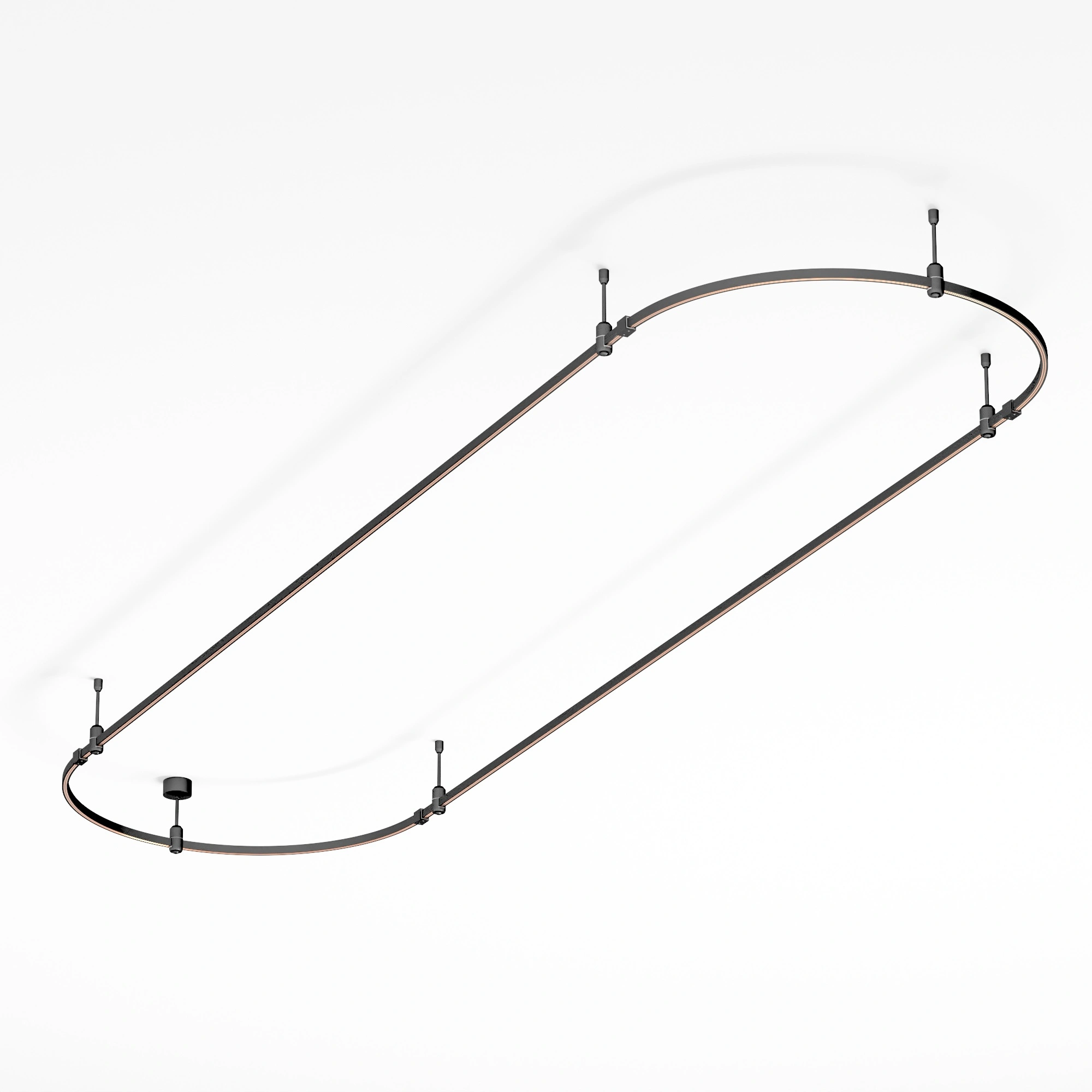 Подвесная конструкция APRIORI, форма овал. В комплекте треки с аксессуарами и жесткими подвесами длиной 200мм. Размер ДxШxВ: 3000x1000x22мм. Монтируется подвесным способом. Шинопровод рассчитан на работу с безопасным напряжением DC48В. Изготавливается из алюминия, цвет черный. Светильники и источники питания приобретаются отдельно.