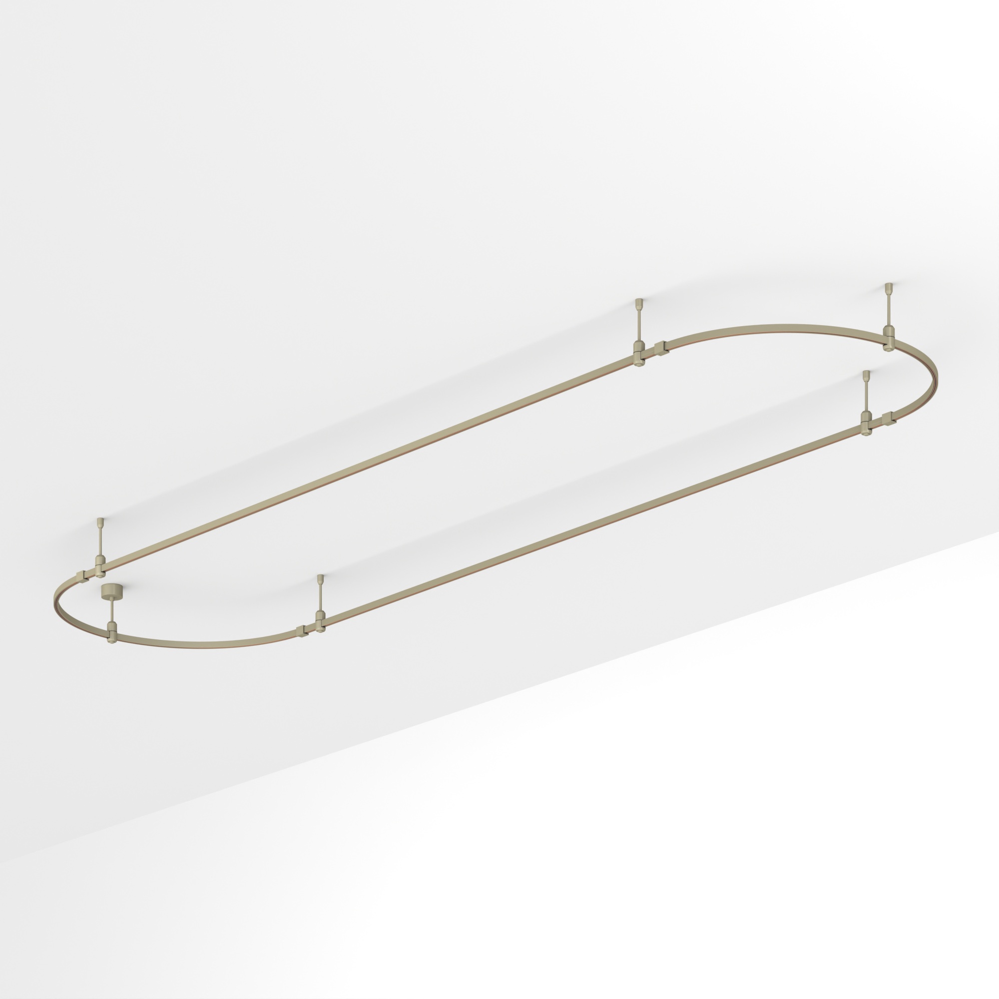 Подвесная конструкция APRIORI, форма овал. В комплекте треки с аксессуарами и жесткими подвесами длиной 200мм. Размер ДxШxВ: 4000x1000x22мм. Монтируется подвесным способом. Шинопровод рассчитан на работу с безопасным напряжением DC48В. Изготавливается из алюминия, анодированного в цвет серо-оливковый. Светильники и источники питания приобретаются отдельно.