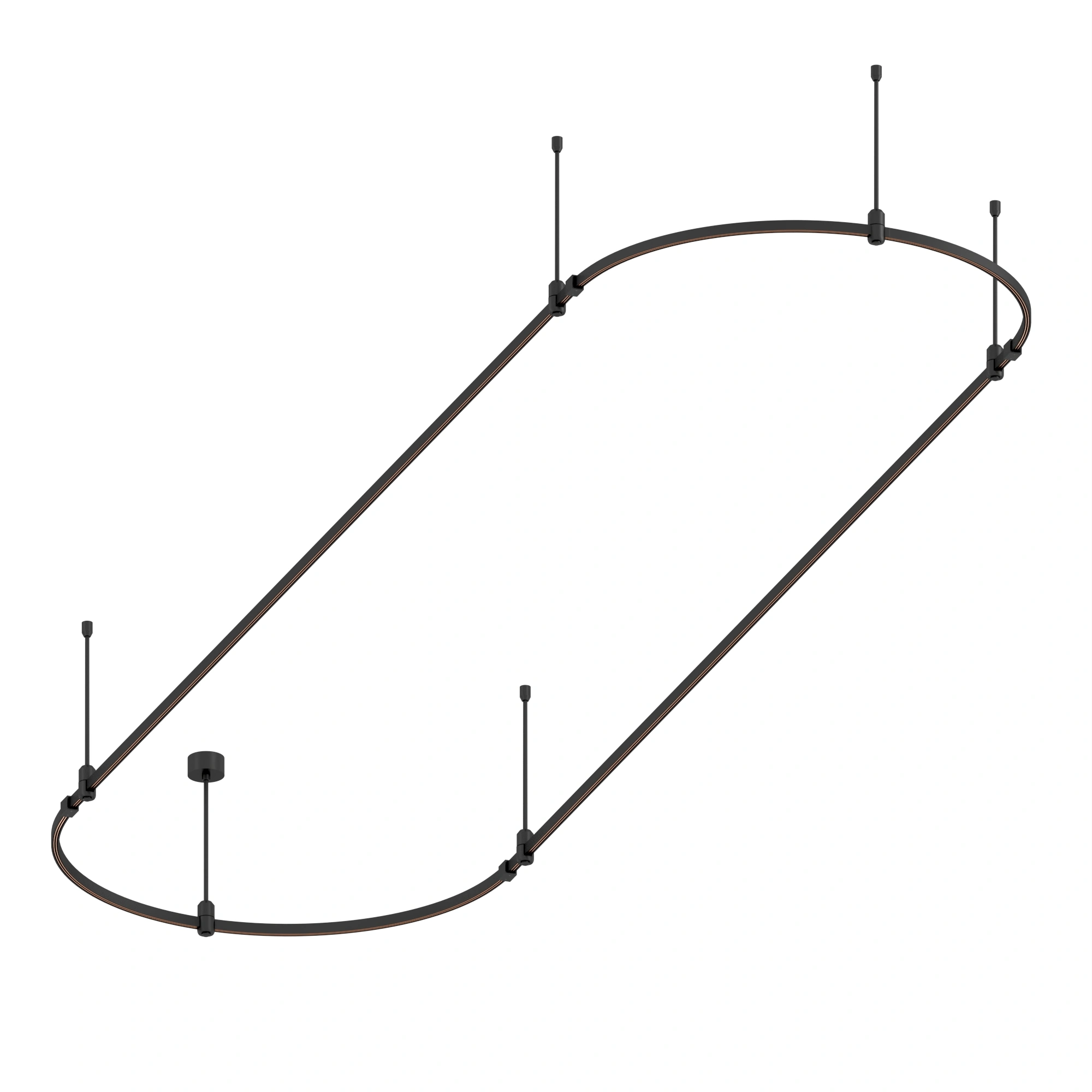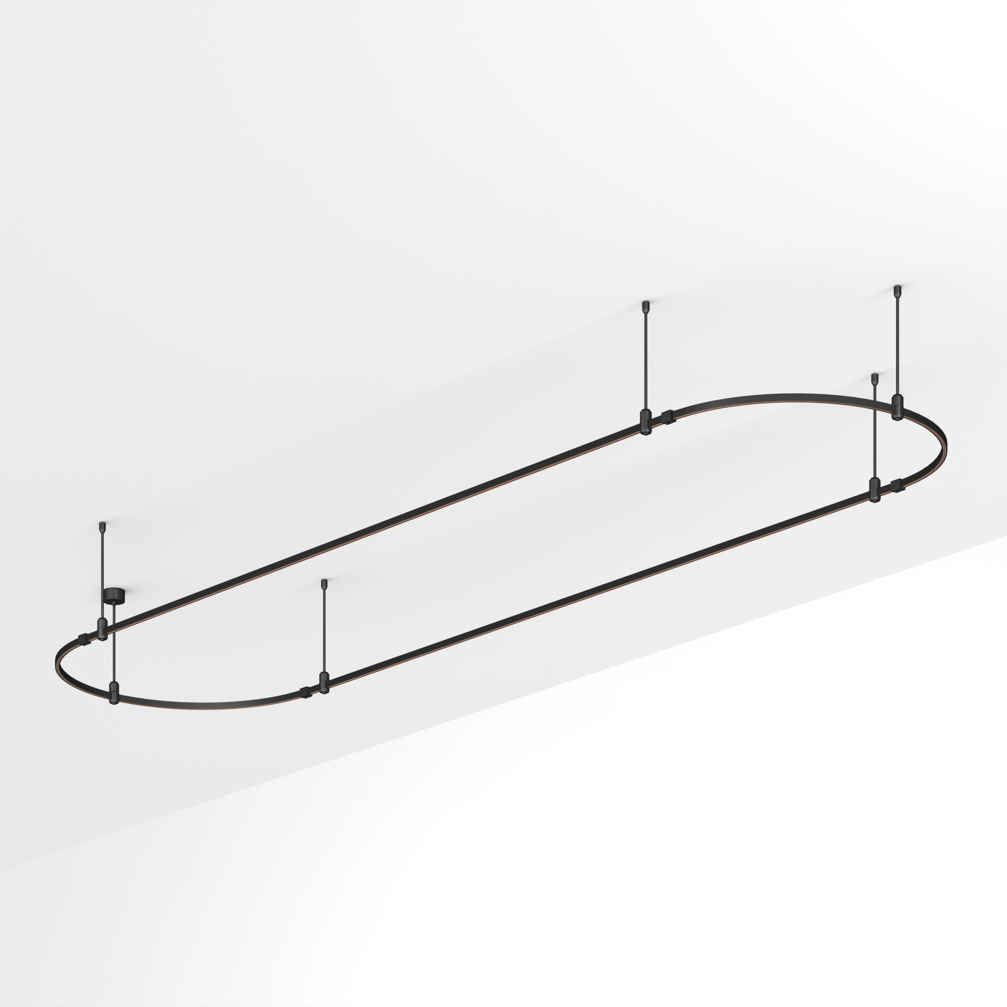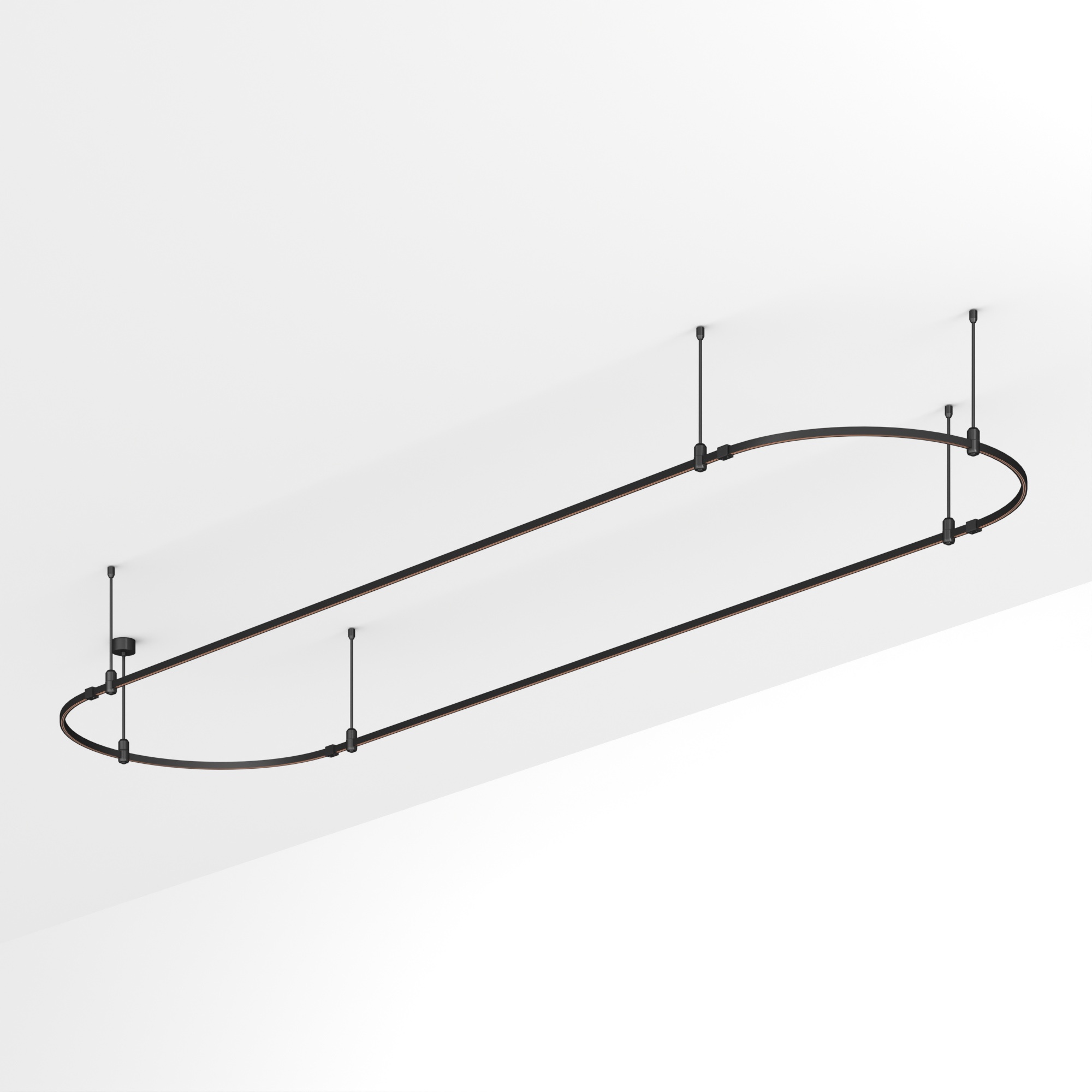 Подвесная конструкция APRIORI, форма овал. В комплекте треки с аксессуарами и жесткими подвесами длиной 400мм. Размер ДxШxВ: 4000x1000x22мм. Монтируется подвесным способом. Шинопровод рассчитан на работу с безопасным напряжением DC48В. Изготавливается из алюминия, цвет черный. Светильники и источники питания приобретаются отдельно.