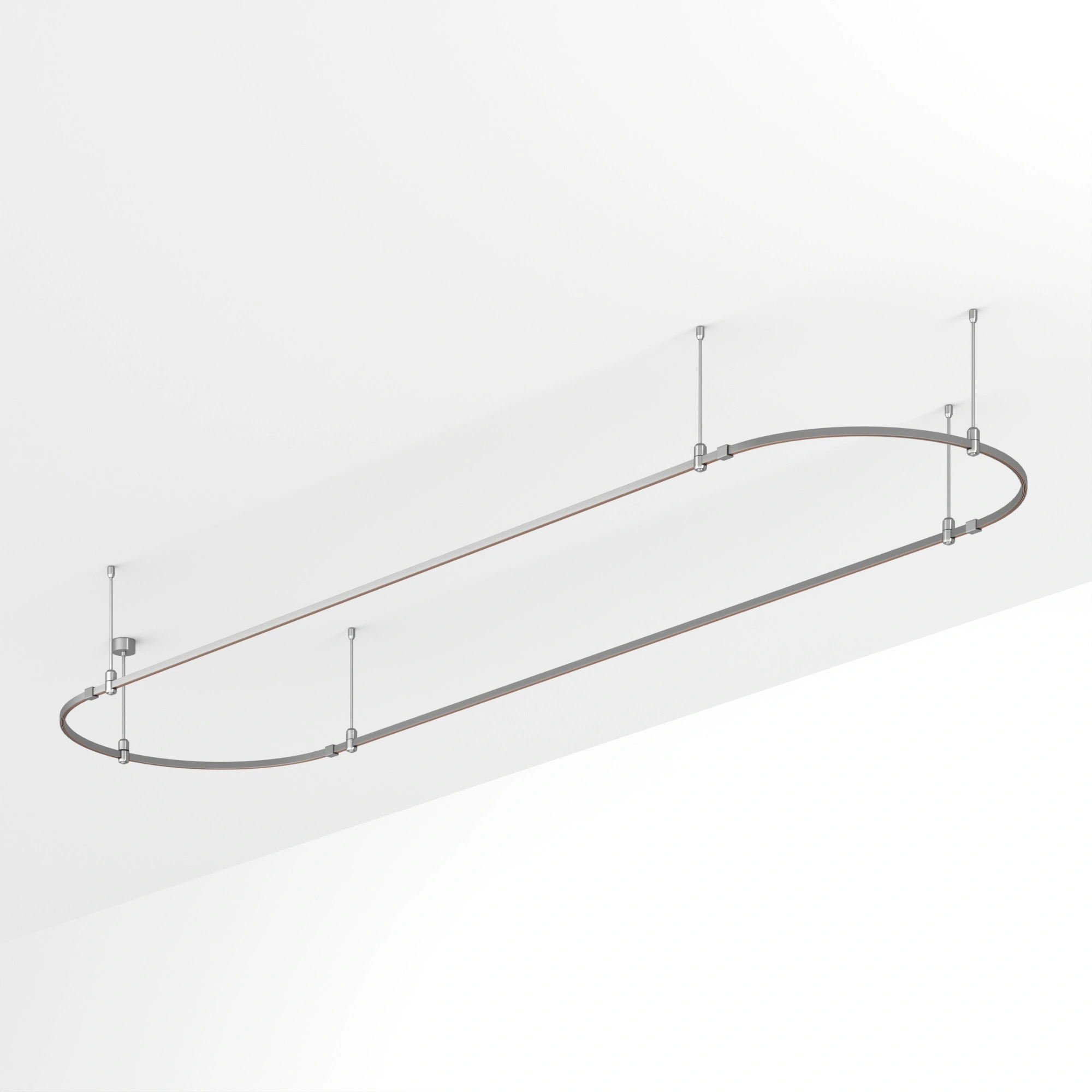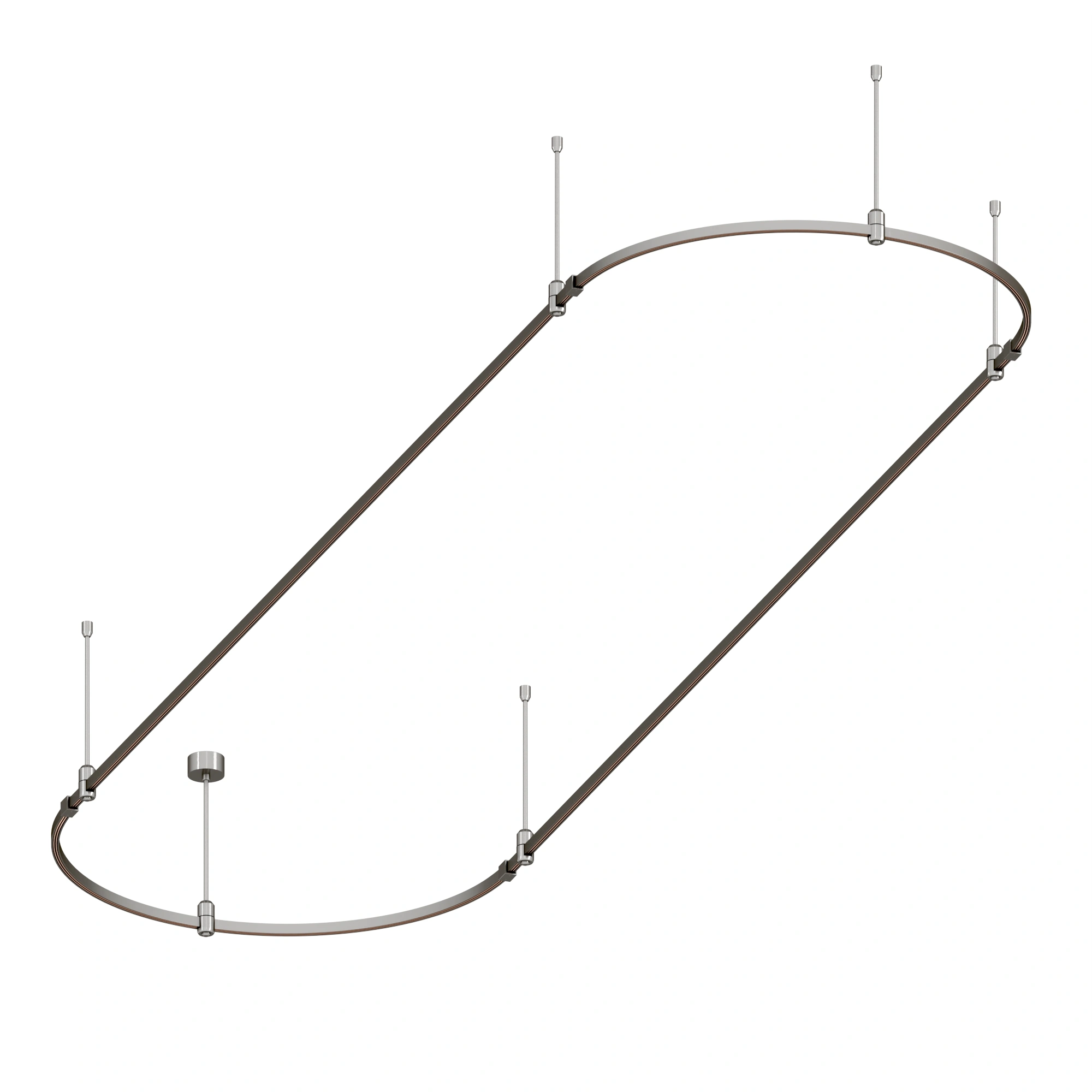 Подвесная конструкция APRIORI, форма овал. В комплекте треки с аксессуарами и жесткими подвесами длиной 400мм. Размер ДxШxВ: 4000x1000x22мм. Монтируется подвесным способом. Шинопровод рассчитан на работу с безопасным напряжением DC48В. Изготавливается из алюминия, анодированного в цвет титан. Светильники и источники питания приобретаются отдельно.